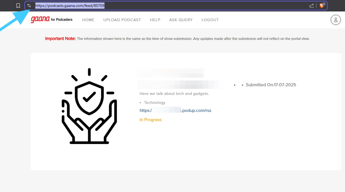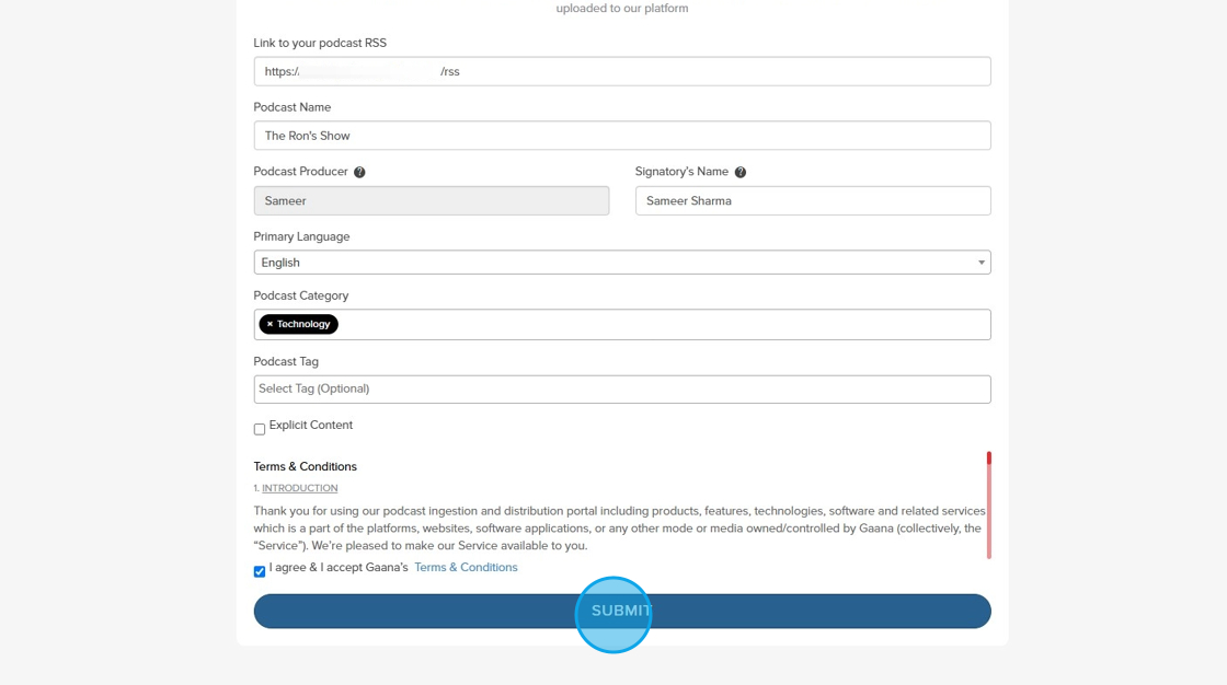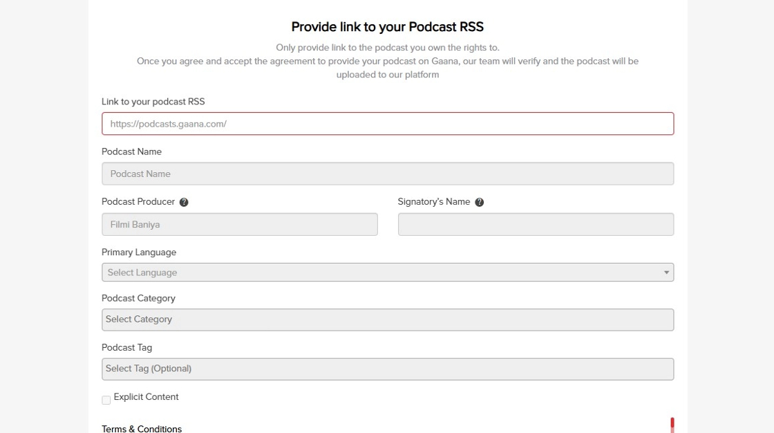 15. Gaana will ask for the RSS feed URL and other details of your podcast