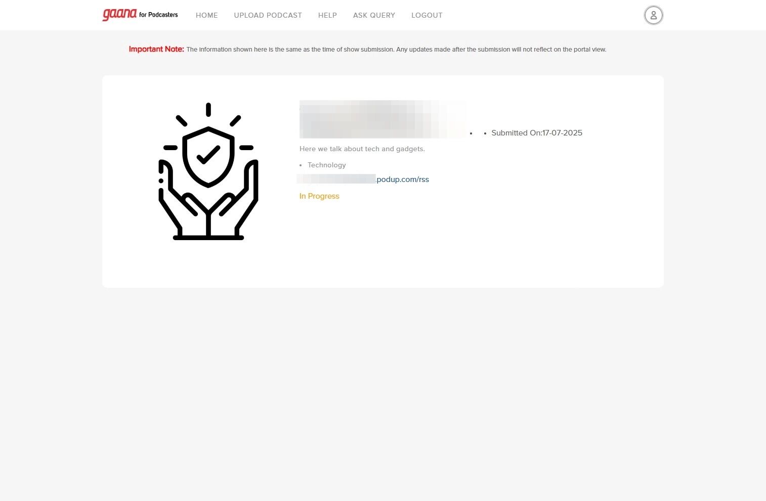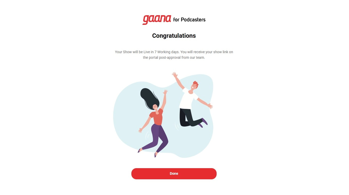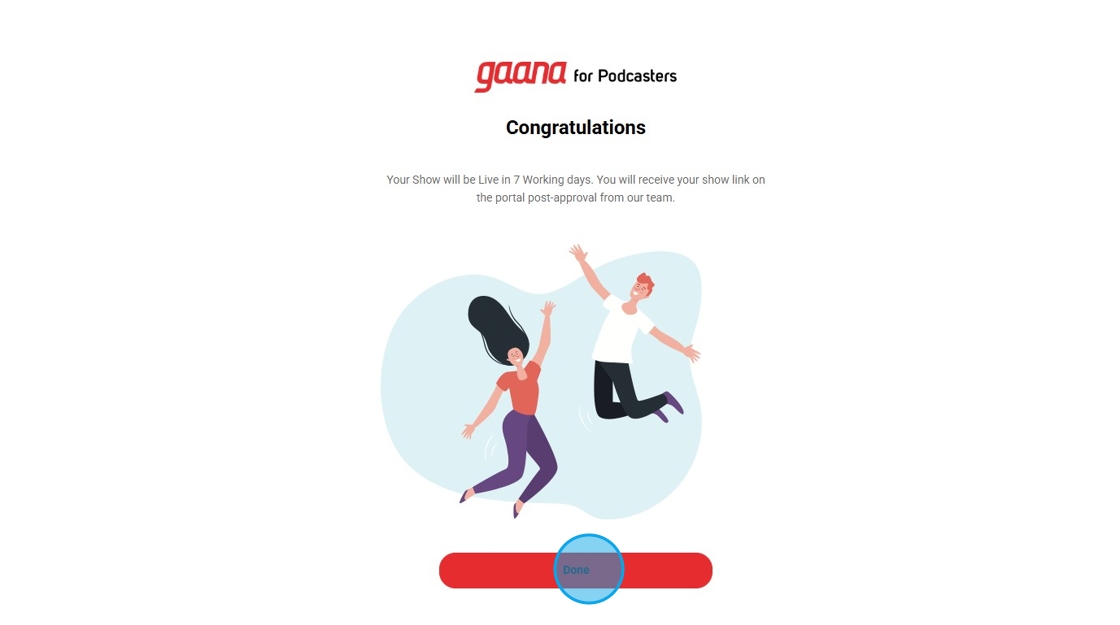 18. Your podcast will be added and you will see a message "Your Show will be Live in 7 Working days. You will receive your show link on the portal post-approval from our team."