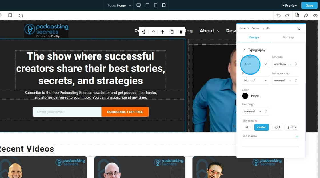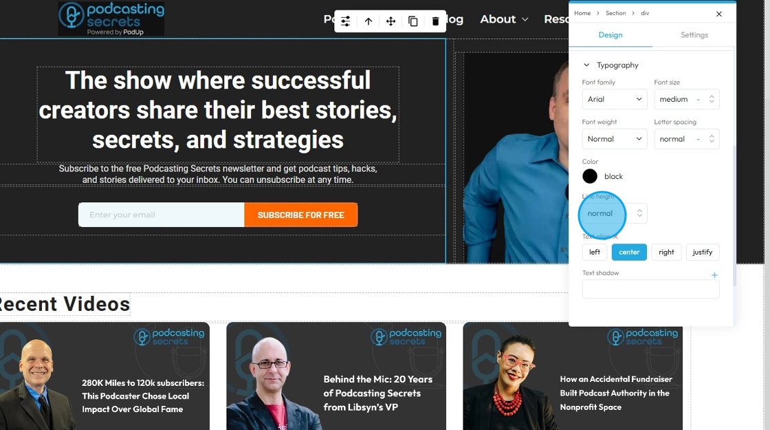 21. Click "Typography" to change the font, size, color, alignment etc. of the text