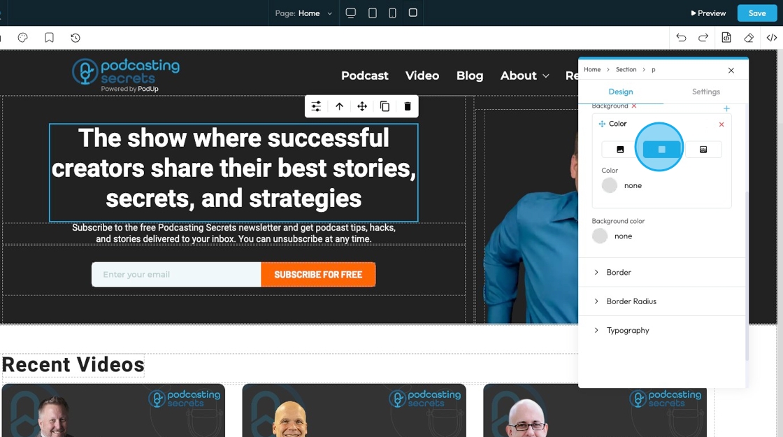 13. Click "Color" to select a specific color for the background or add a specific hex color