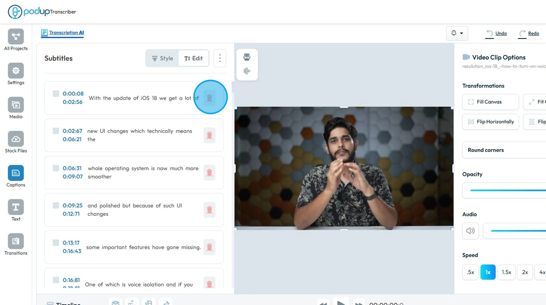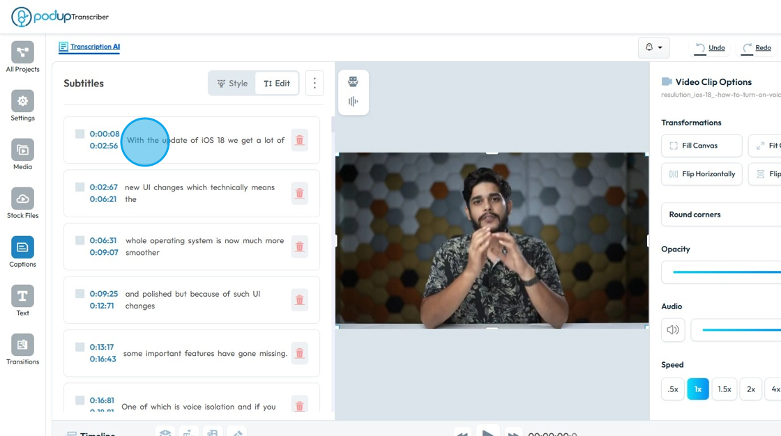 This guide provides essential steps for customizing subtitles in PodUp, enhancing your video’s accessibility and viewer engagement. It covers everything from editing transcript lines to selecting your preferred subtitle style, ensuring a personalized ...