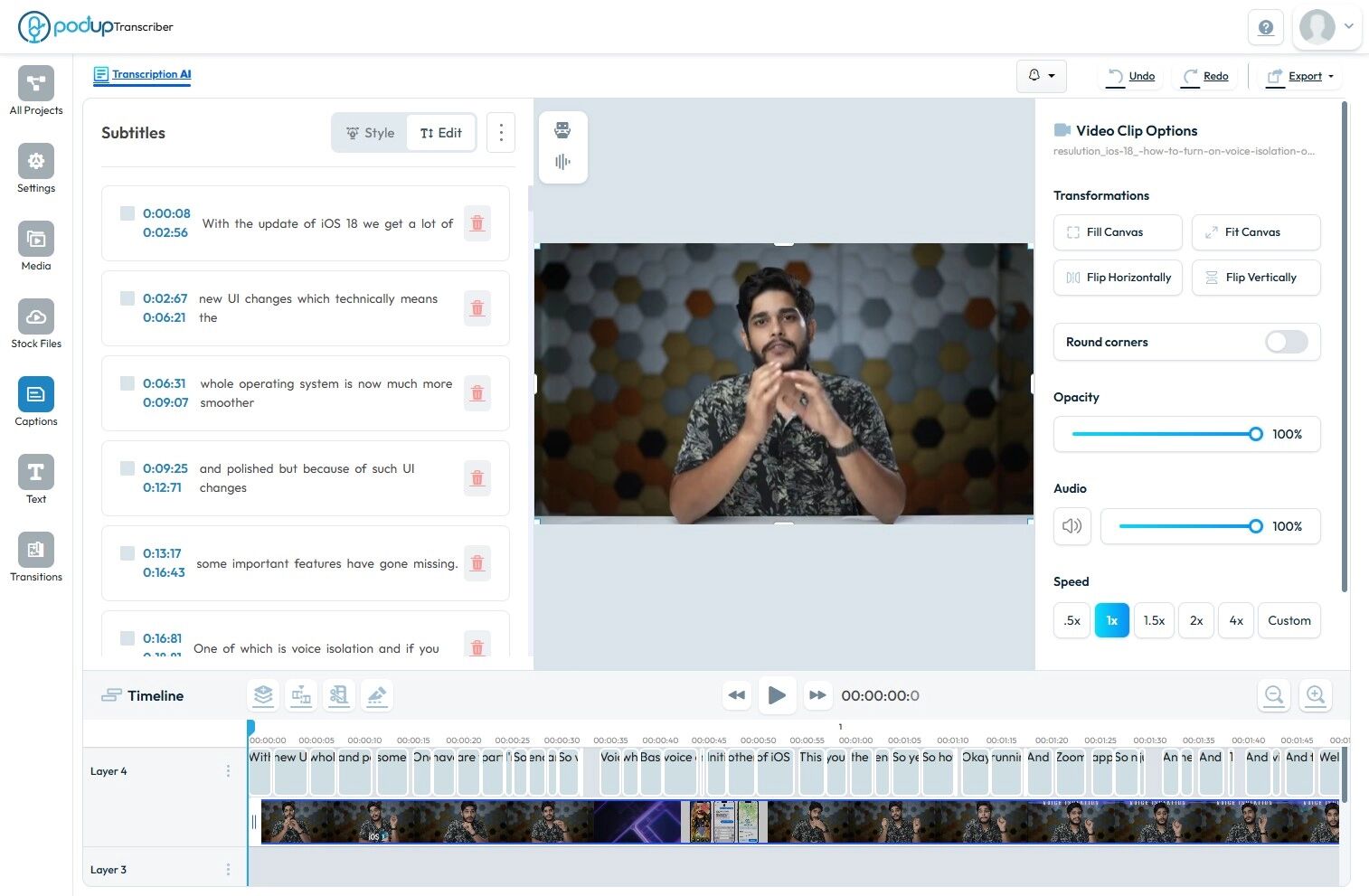 Customize subtitles in your videos with ease using this guide. Learn how to edit text, fix errors, and choose fonts to boost accuracy, style, and accessibility. 1. Navigate to https://app.podup.com/home 2. Click "AI Tools" 3. Click "Transcriber" 4. ...