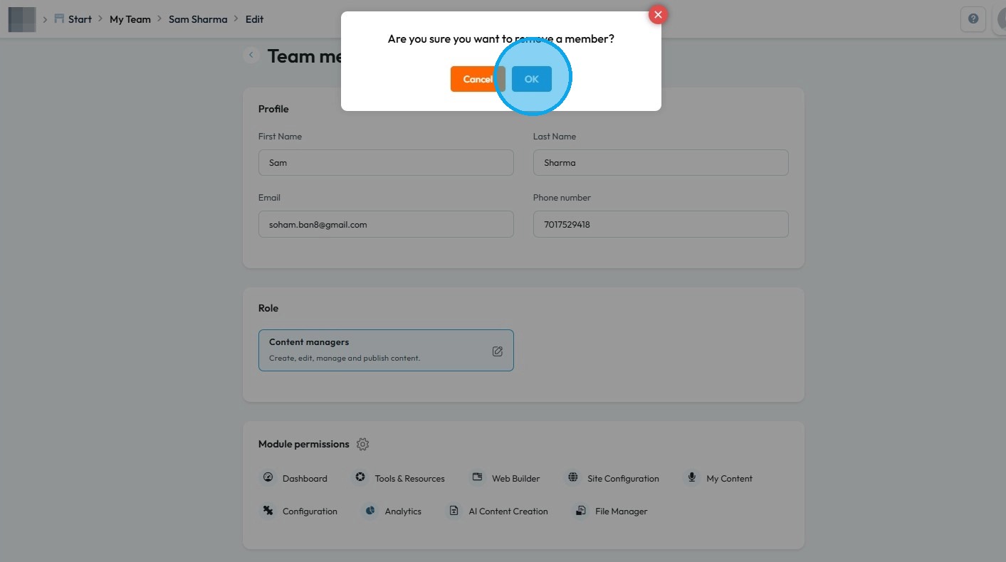 How to delete a team member?
