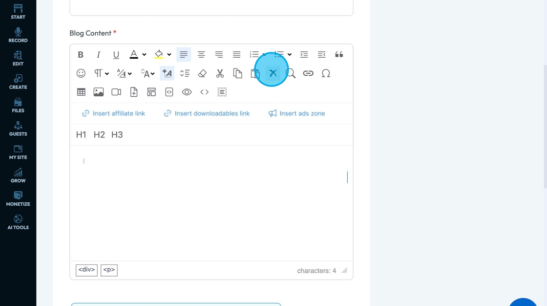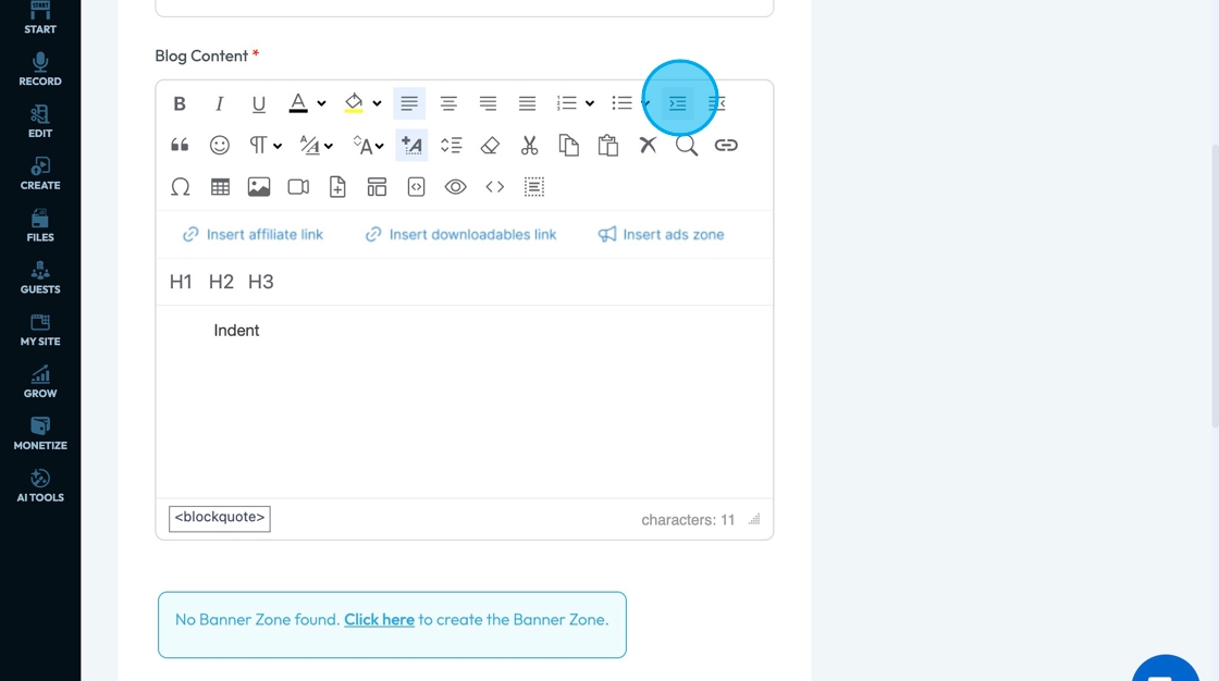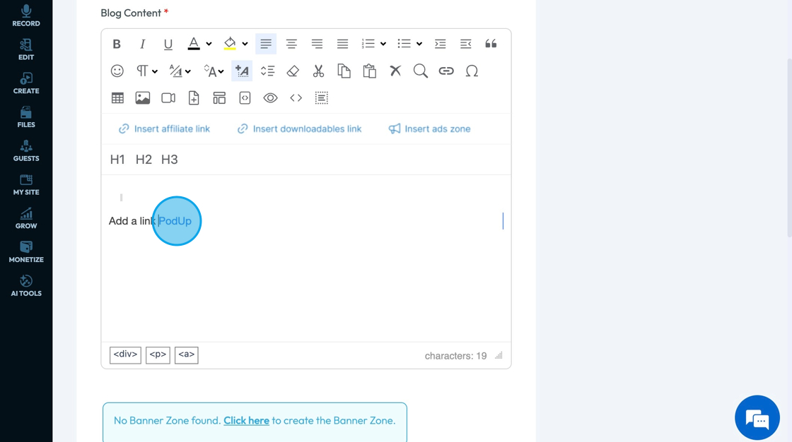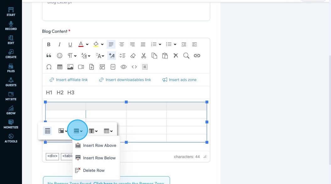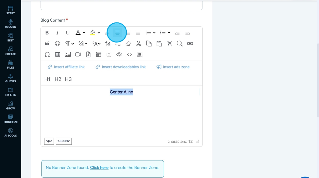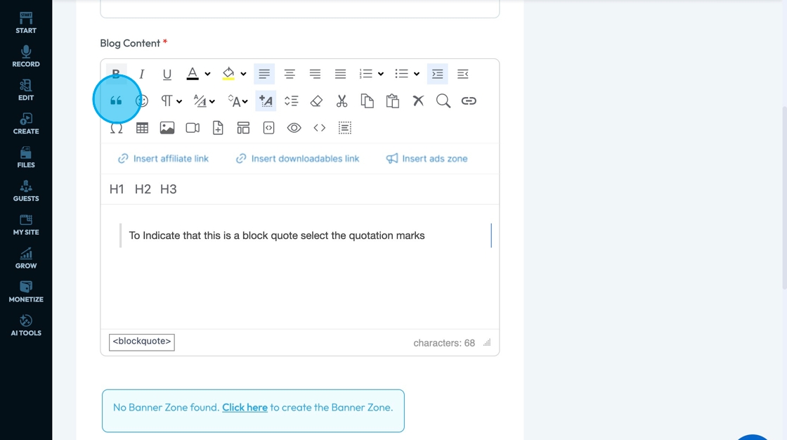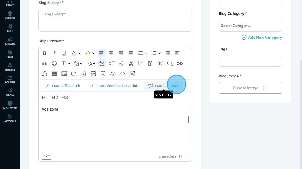 71. Click "Insert ads zone" to add a space in your article for an advertisement