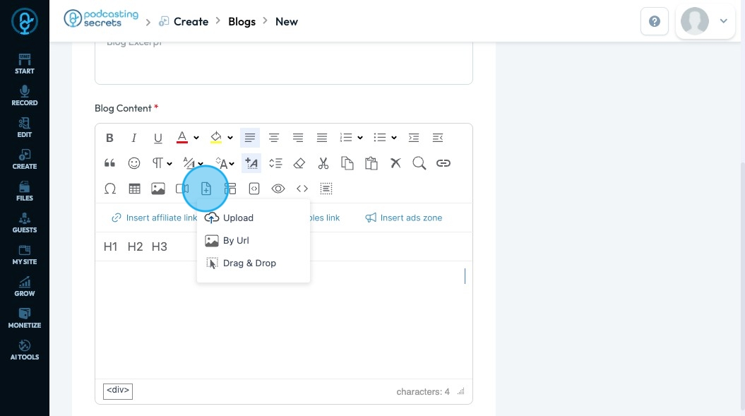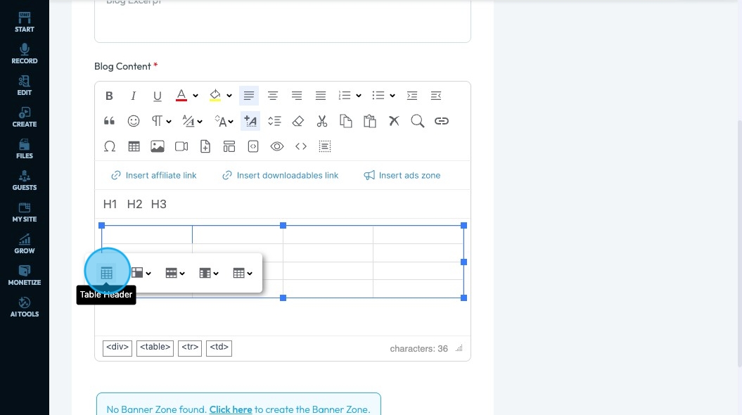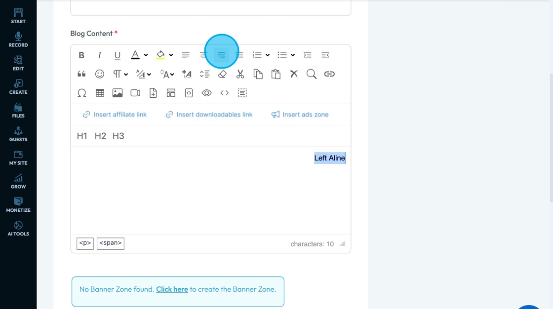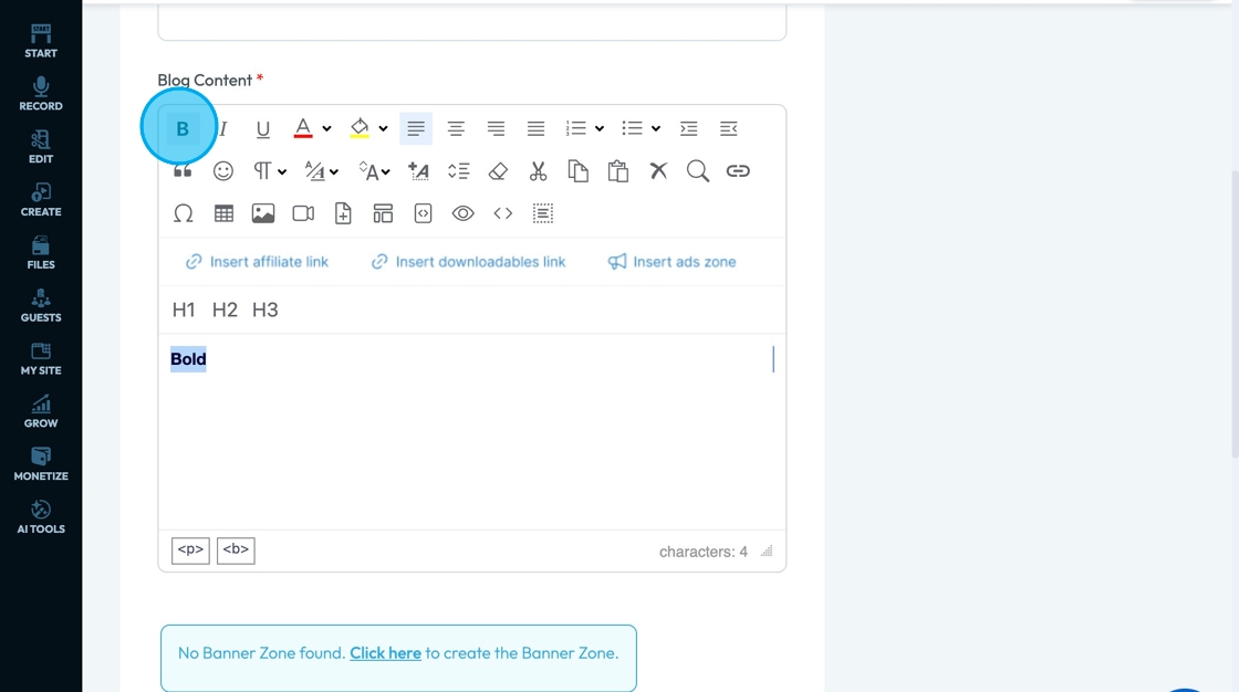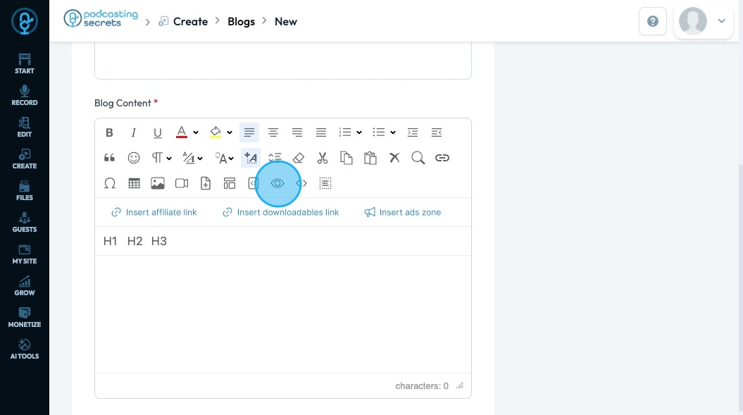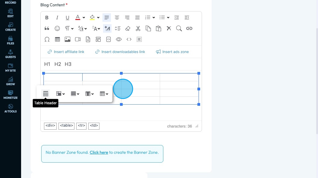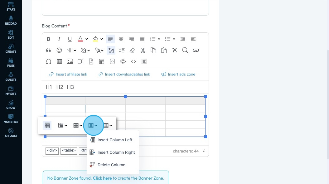 71. Click "Insert ads zone" to add a space in your article for an advertisement