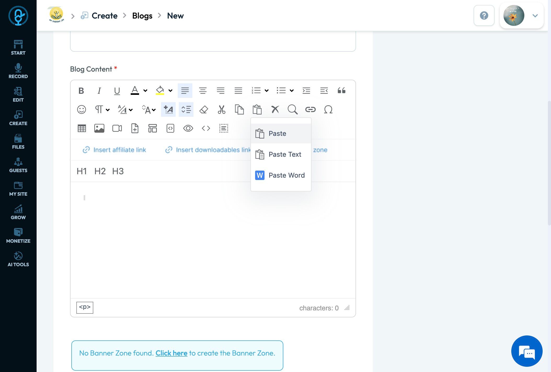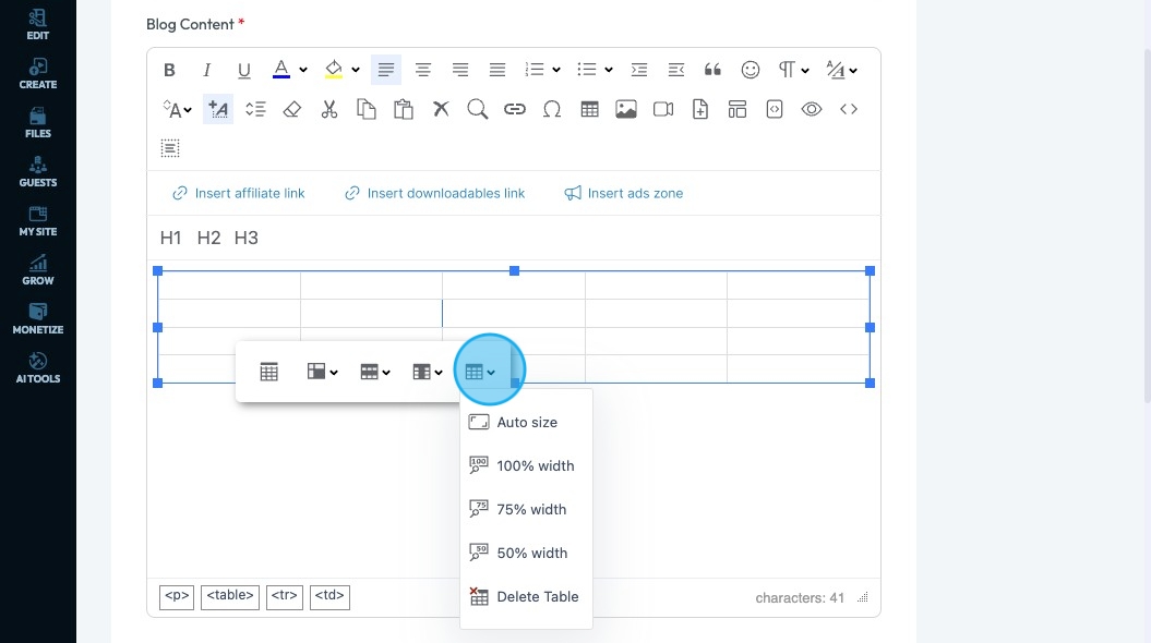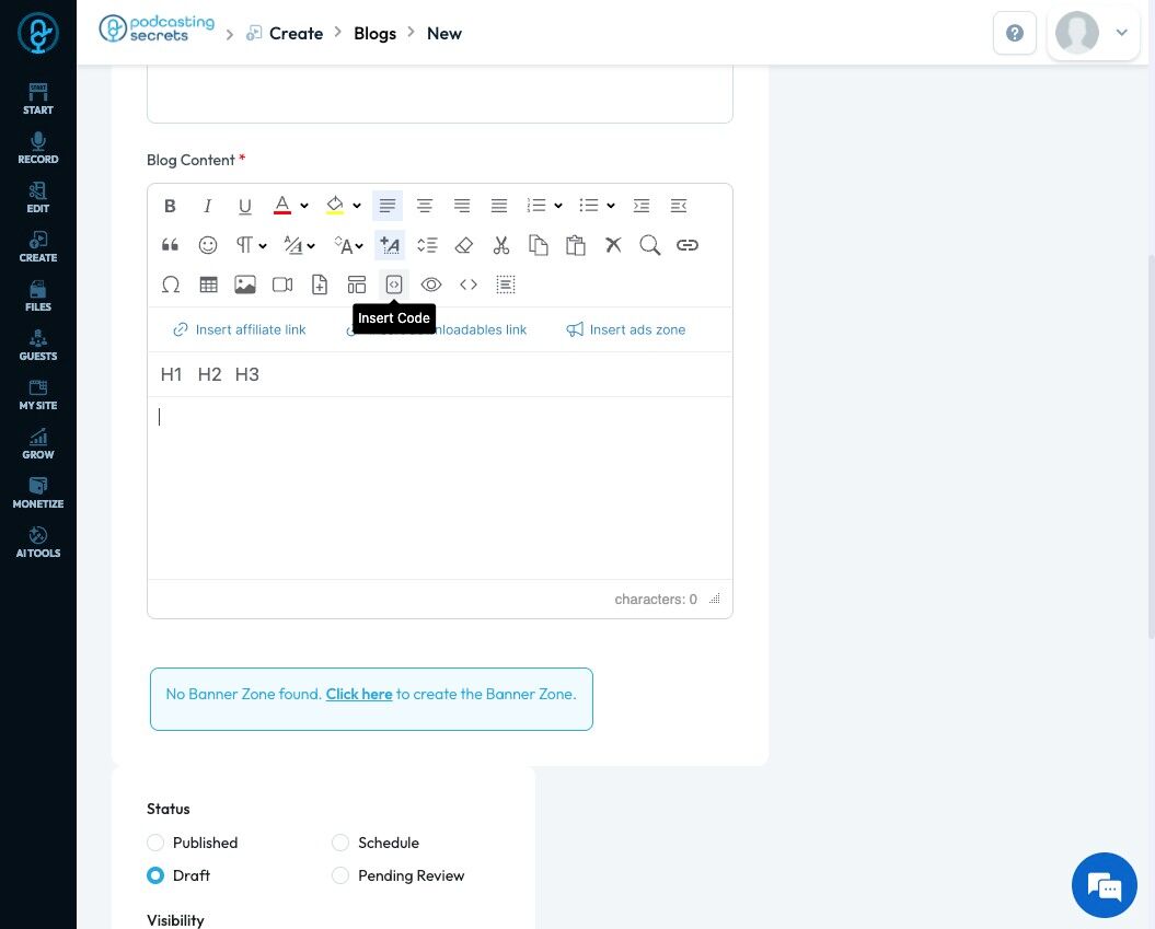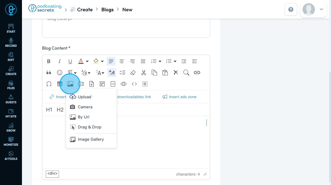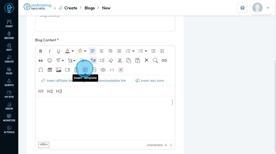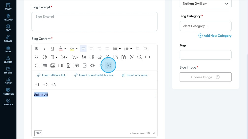 71. Click "Insert ads zone" to add a space in your article for an advertisement