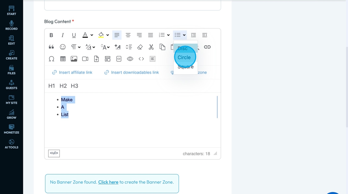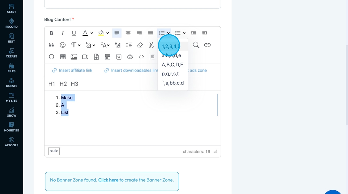 11. Click "Ordered List" - the lines with numbers in front of them - to make a sequential list (1,2,3 or a.b,c)