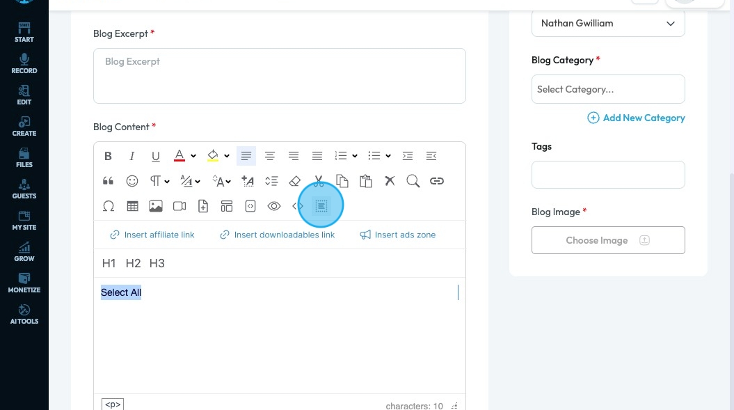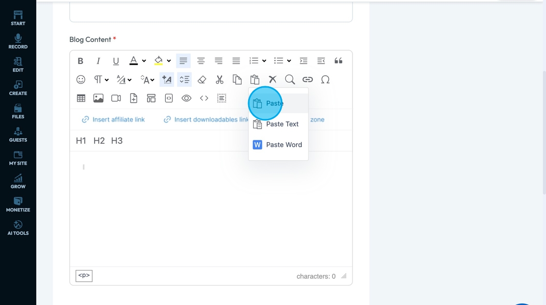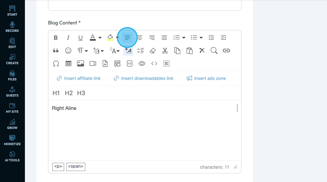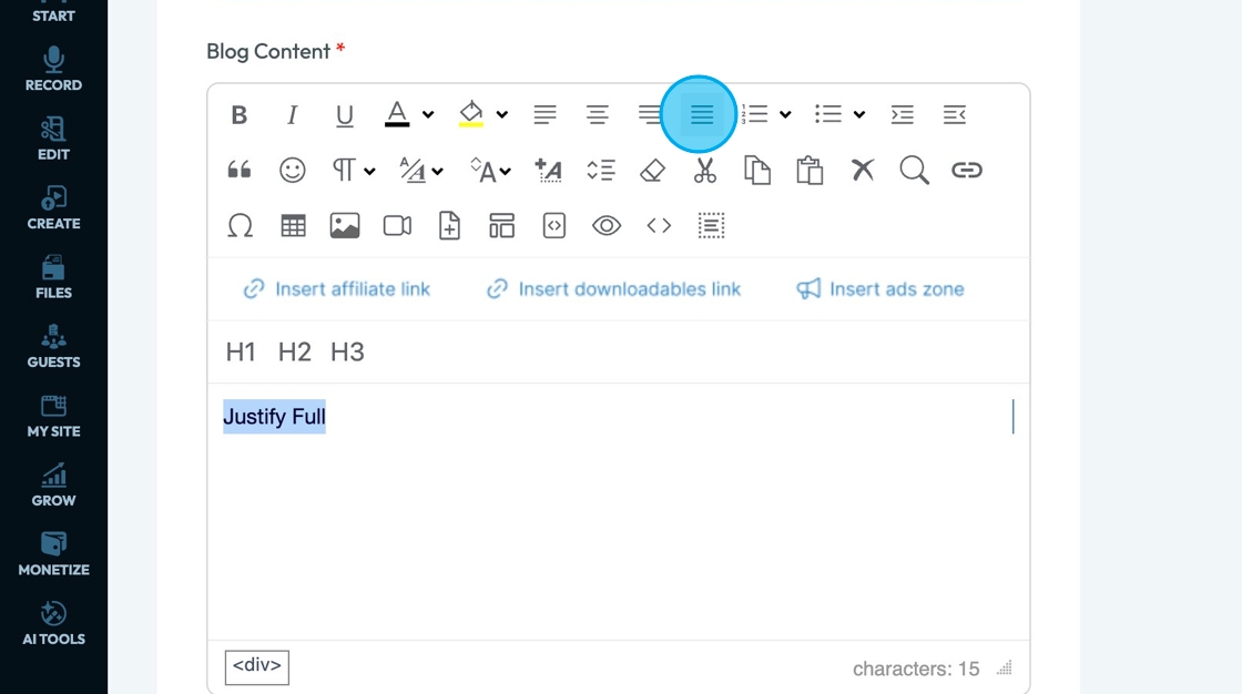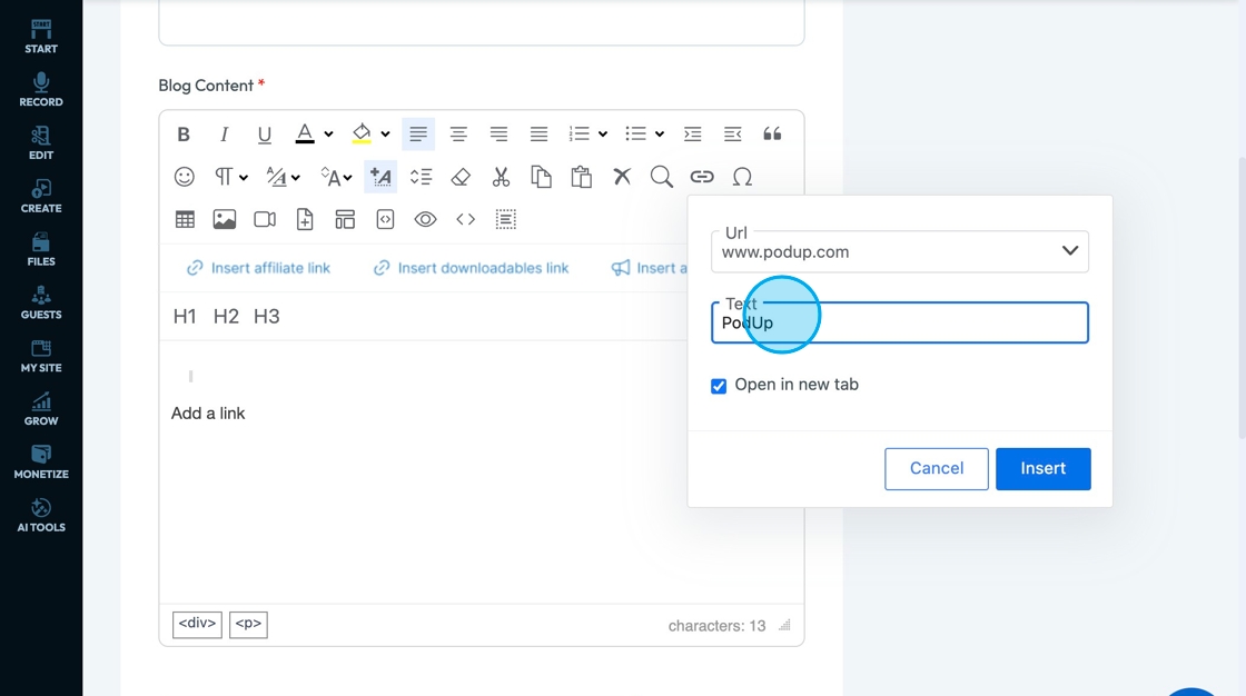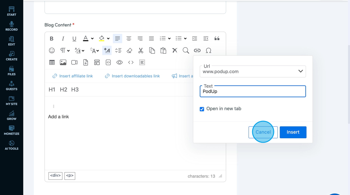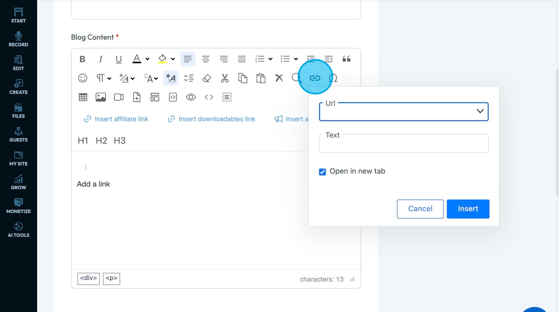 67. Click "Insert Affiliate Link" to add an affiliate link to you text