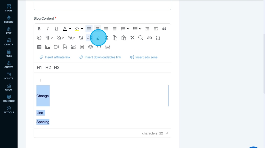 22. Click "Remove Format" - the eraser - to remove the format of the selected text (like bold or justify center)