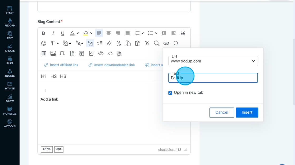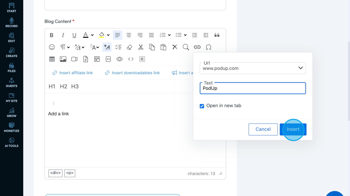 38. Click "Insert" to add the URl to the text