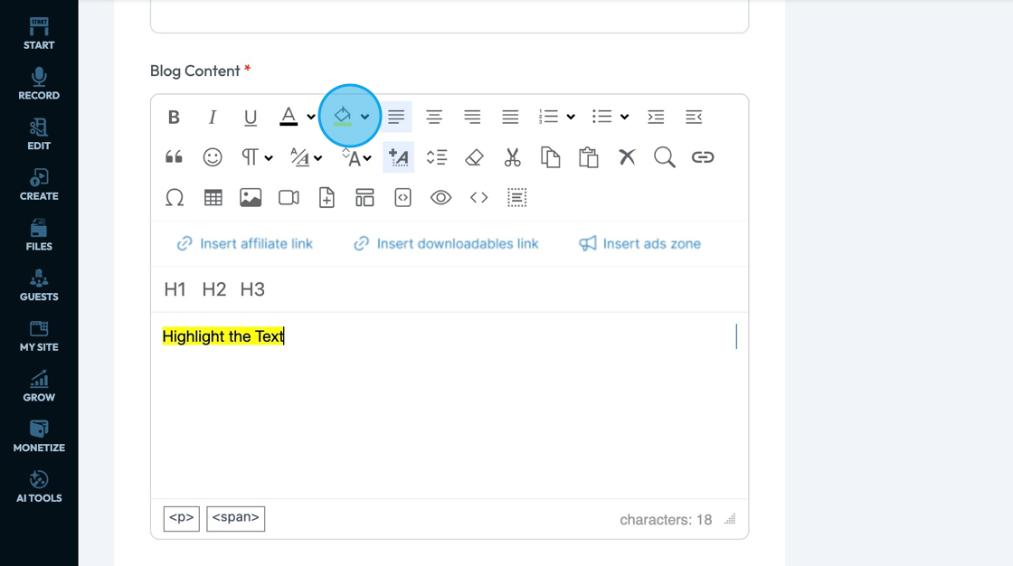 6. Click "Highlight the Text" to add a background color for the text