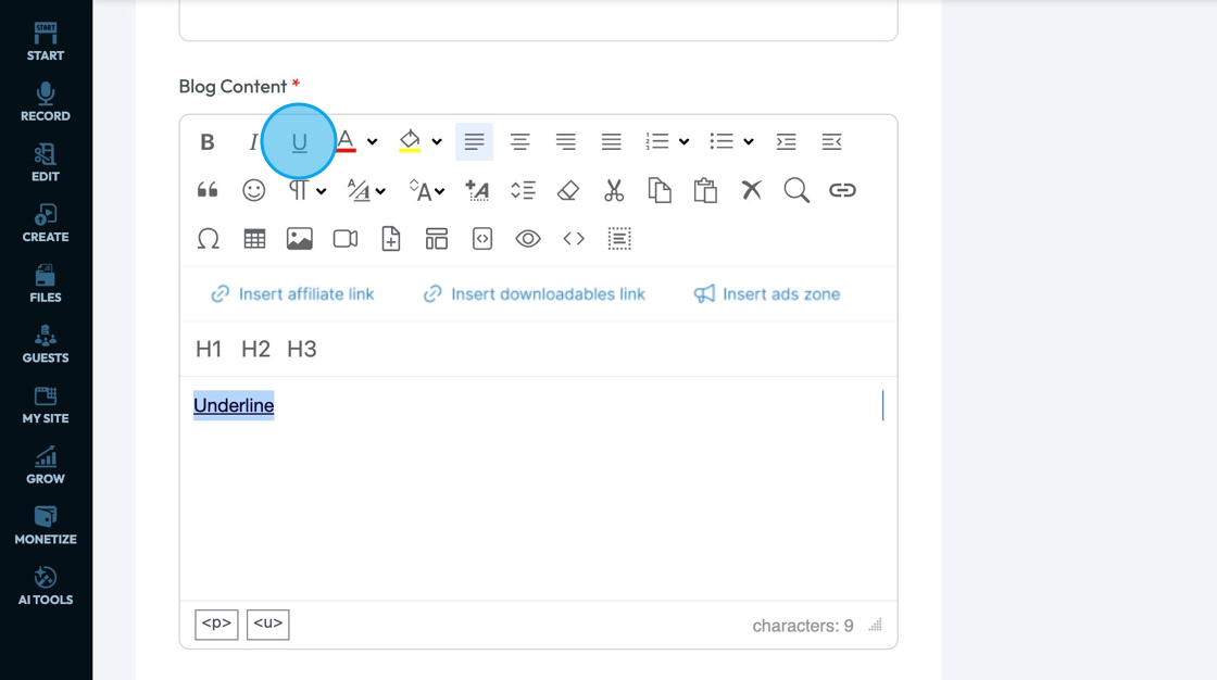 3. Click "U" to underline the text which means to put a line underneath the text