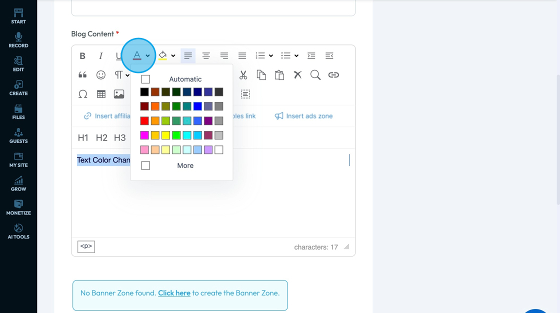 5. Click the drop-down arrow to change the color of the font underneath the A
