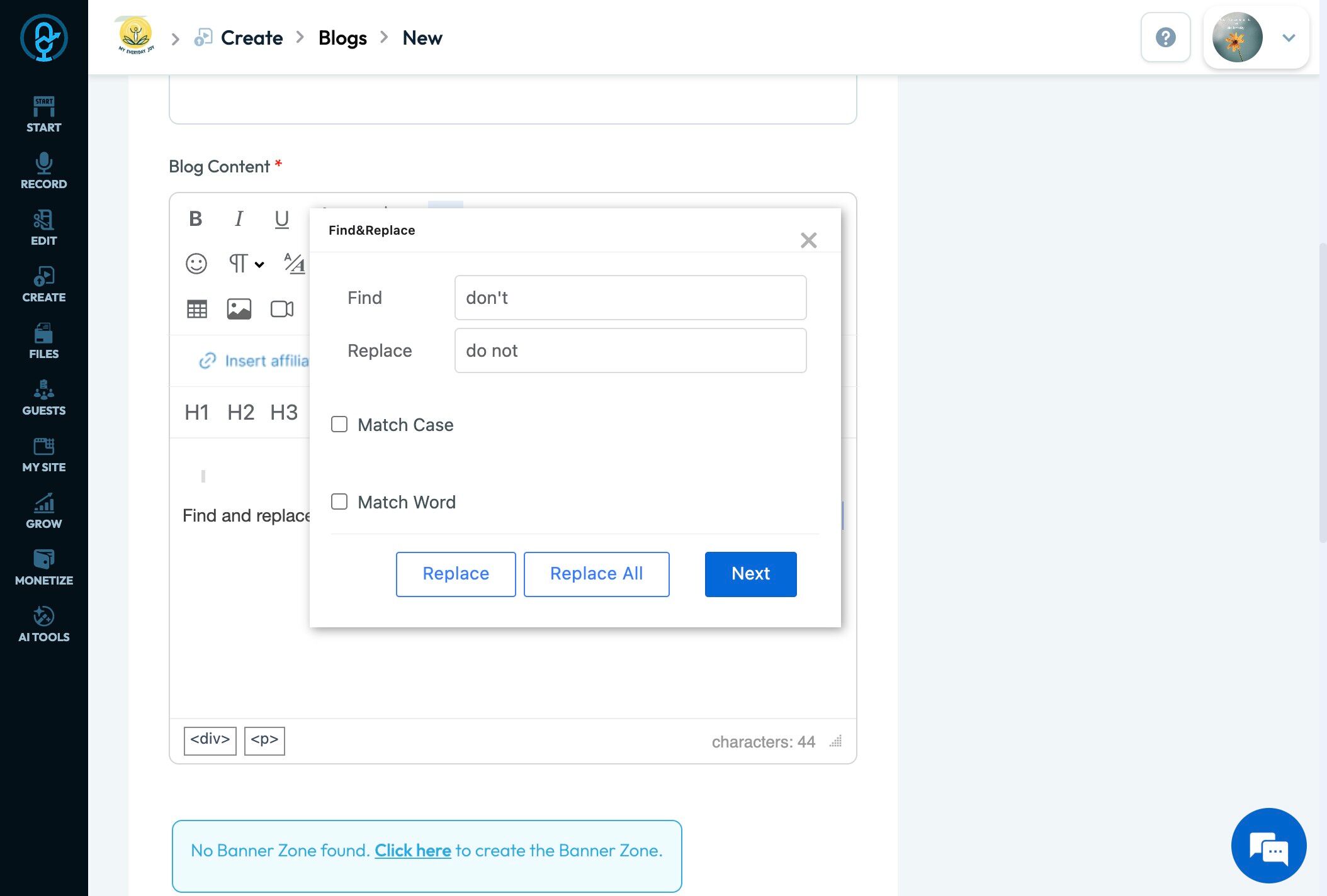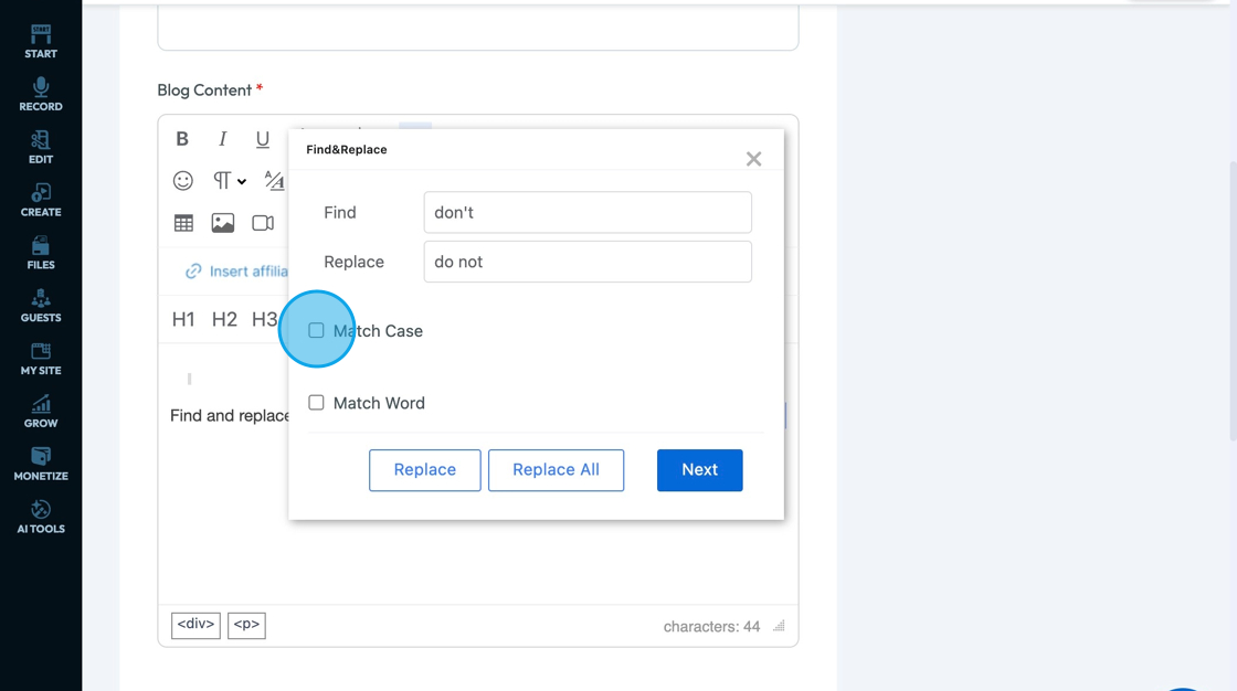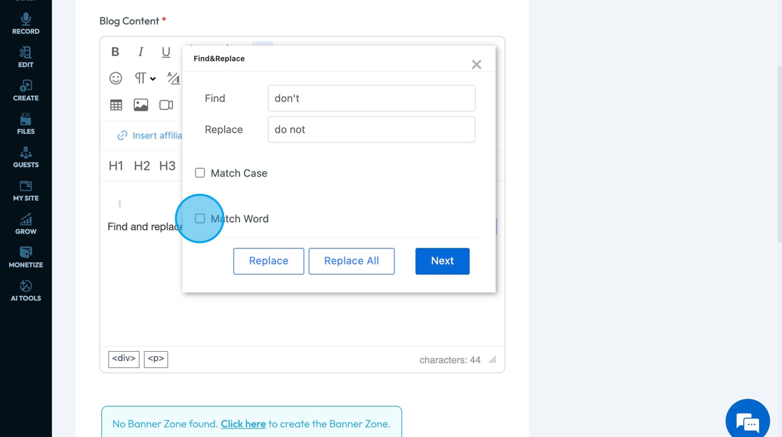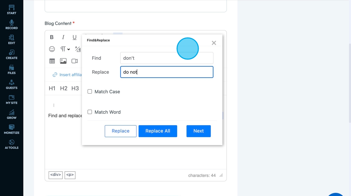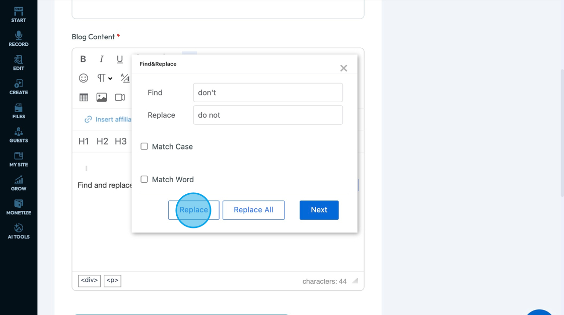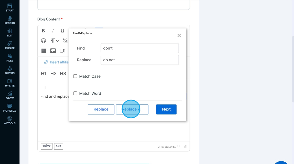 32. Click "Replace All" to replace all of the words found by the "Find and Replace Tool"