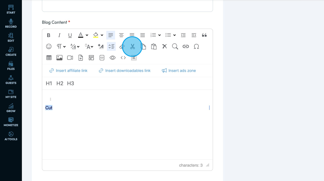 23. Click "Cut" - the scissors - to remove the selected text, image, or element and temporarily store it so you can paste it somewhere else