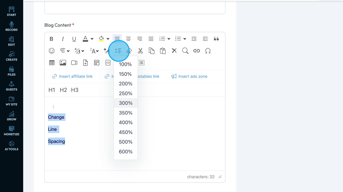 21. Click "Line Height" - the lines with 2 arrows to the left of them - to change the line spacing