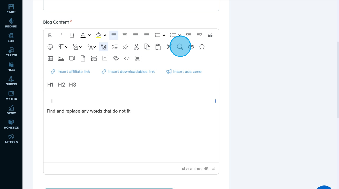 27. Click "Find & Search" - the magnifying glass - to run a search for words that you want to change or replace