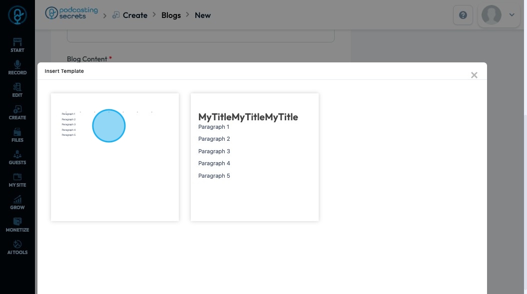 60. A popup will appear allowing you to select the style of template that you want to use