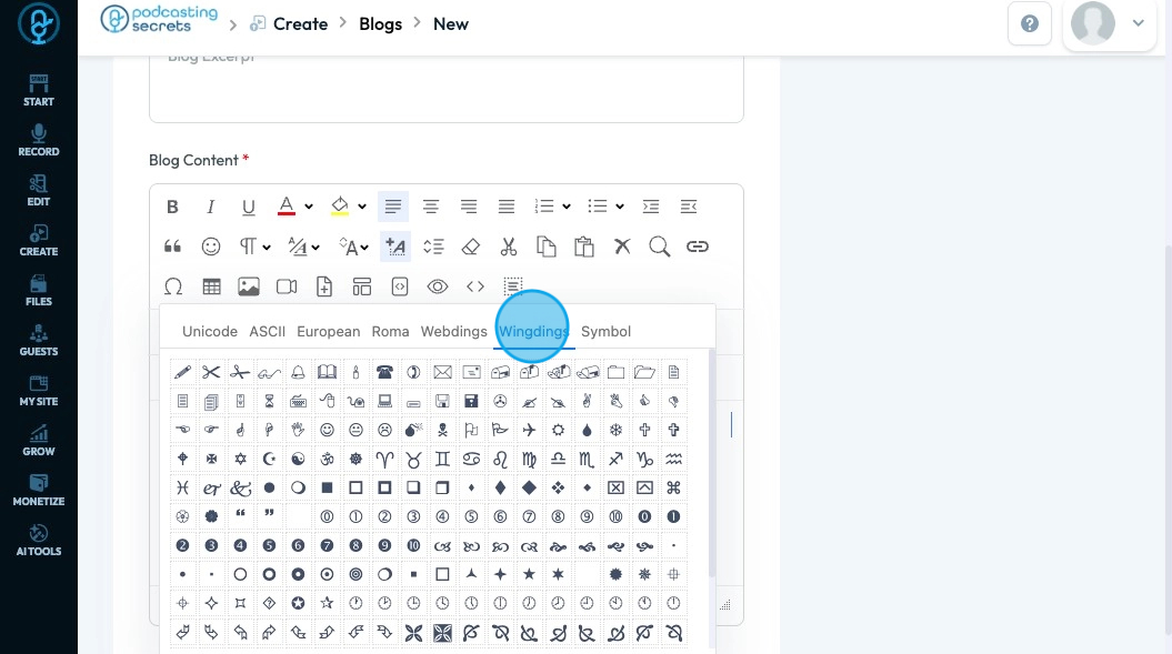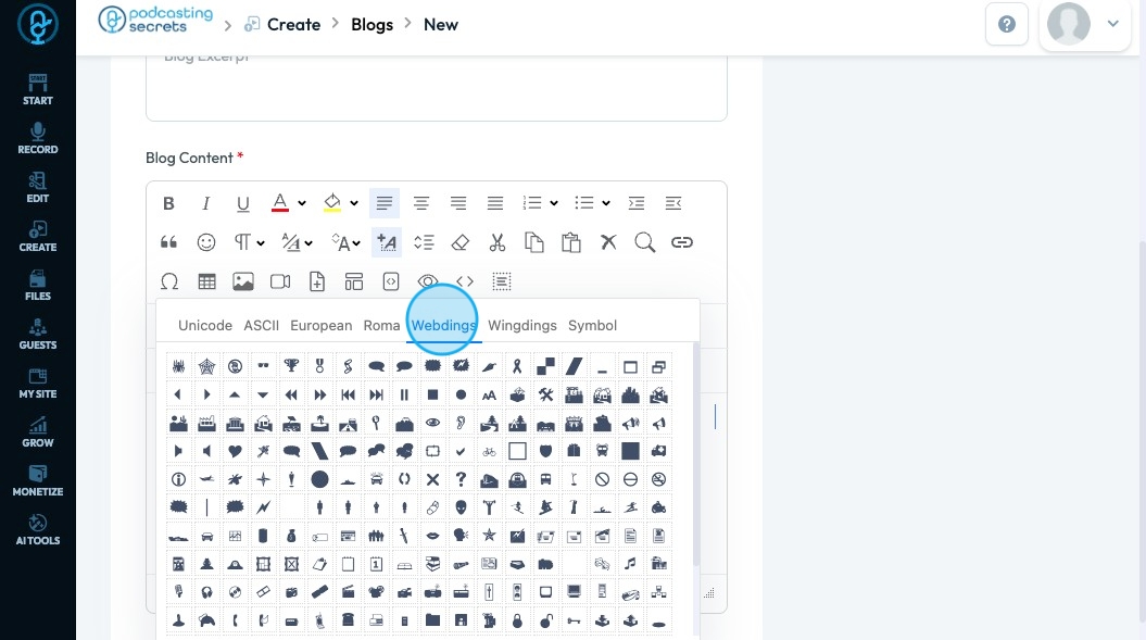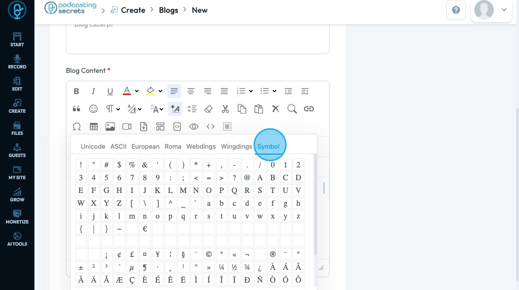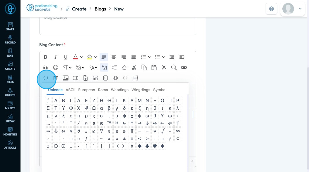 40. Click "Special Characters" - the horseshoe-looking icon - to access characters that are not available in a standard keyboard that help you communicate clearly specifically in other languages or when adding visual elements