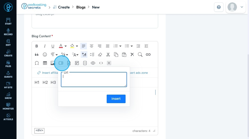 57. Click "Insert Video" to embed a video into your text