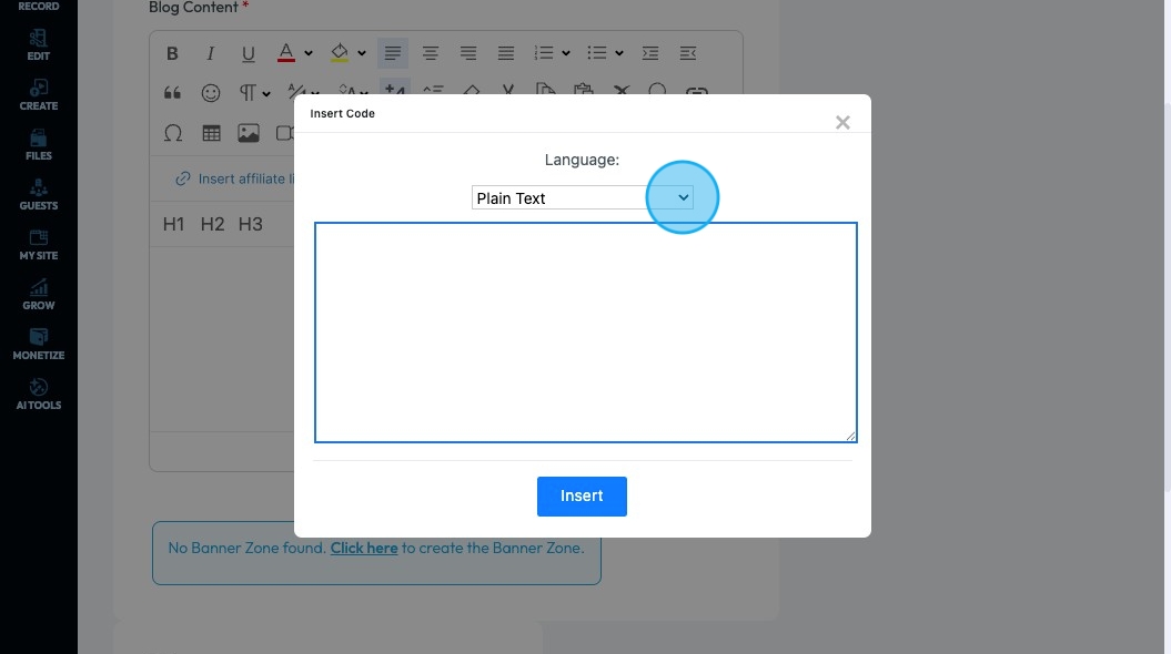 Select "Insert" to add the code to the page