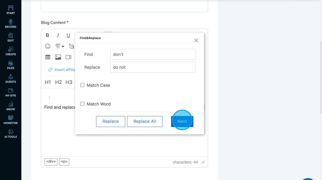31. Click "Replace" to replace the current selected word