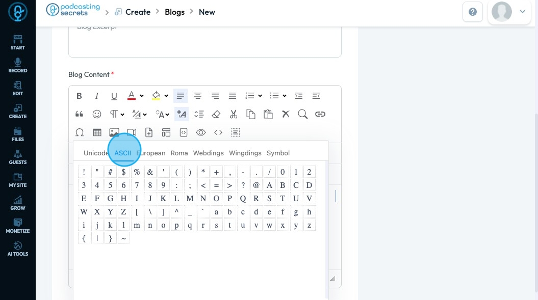 42. Click "ASCII" which is a basic English character set that includes letters, numbers, punctuation, and control codes