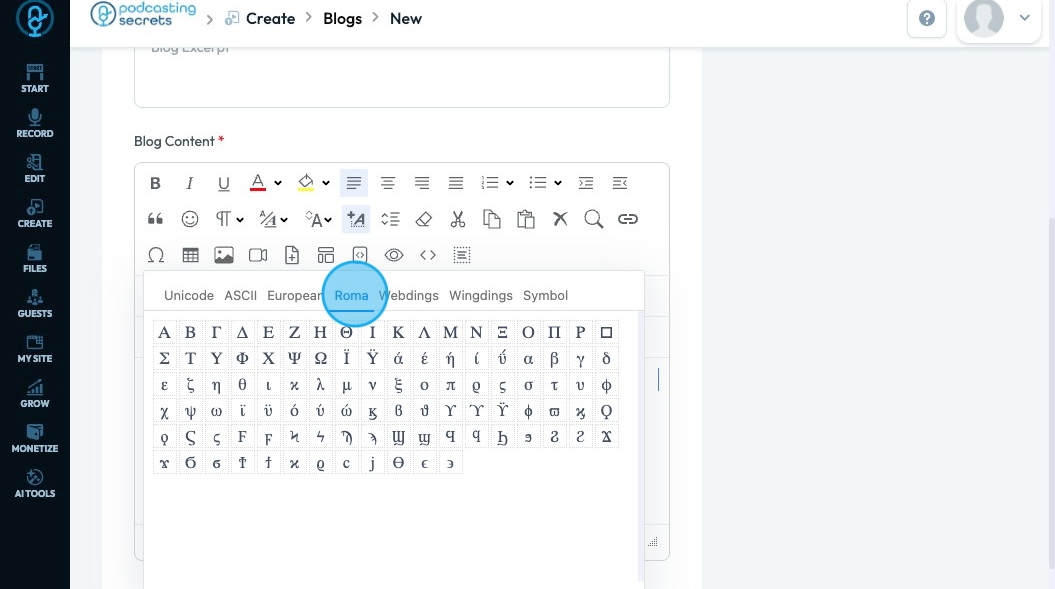 44. Click "Roman" which is also known as Latin script, includes standard English alphabet letters A–Z (uppercase and lowercase) used in many Western languages.