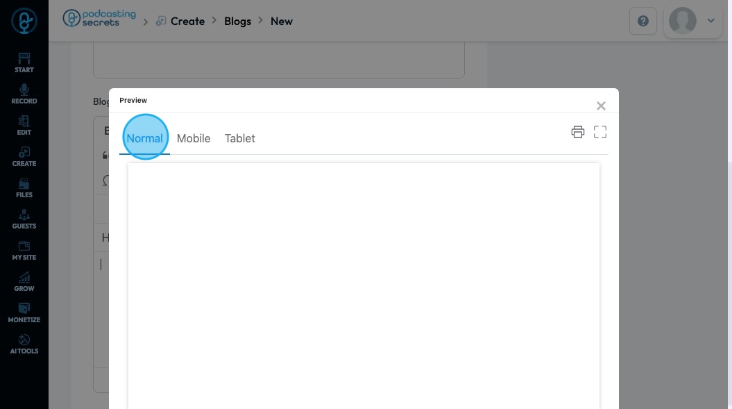 64. A popup will appear allowing you see a preview of the page in normal, mobile, and tablet