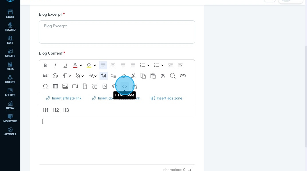 65. Click "HTML Code" to write a code in your text box