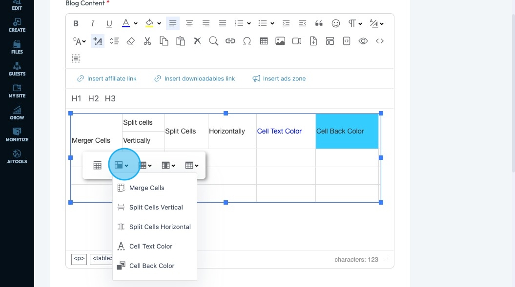 52. Click "Table Cell" to change the layout of the currently selected cell