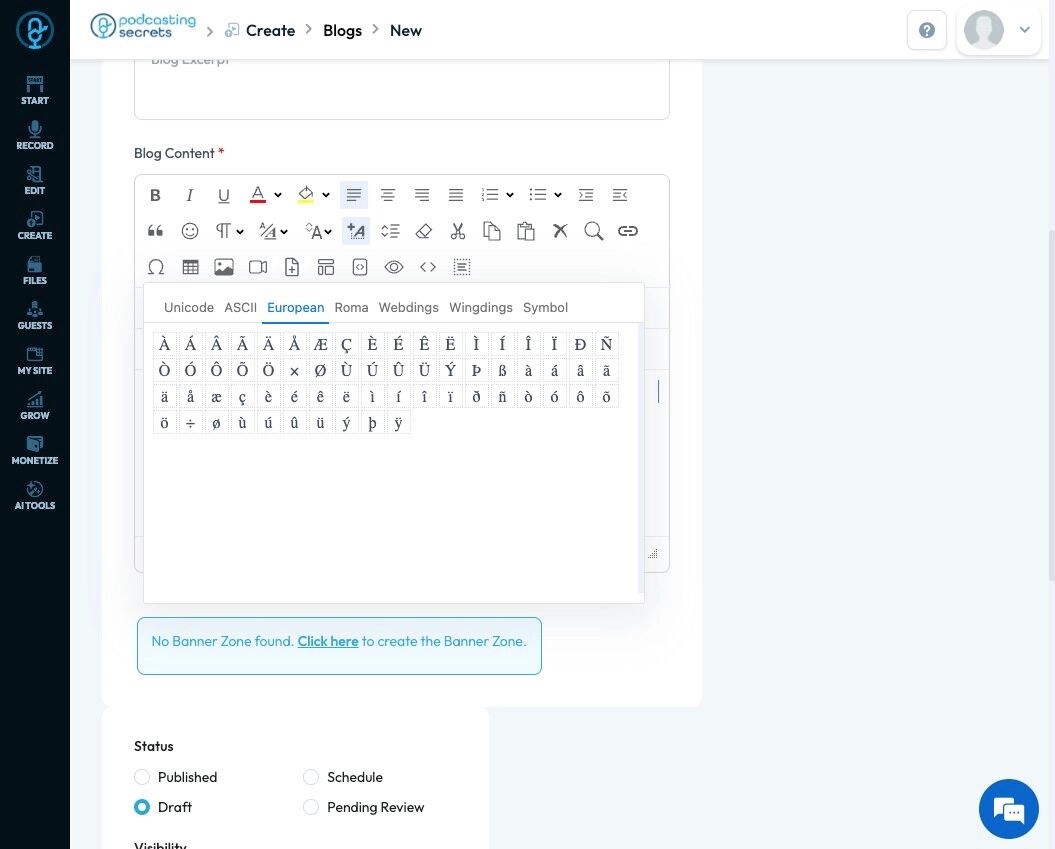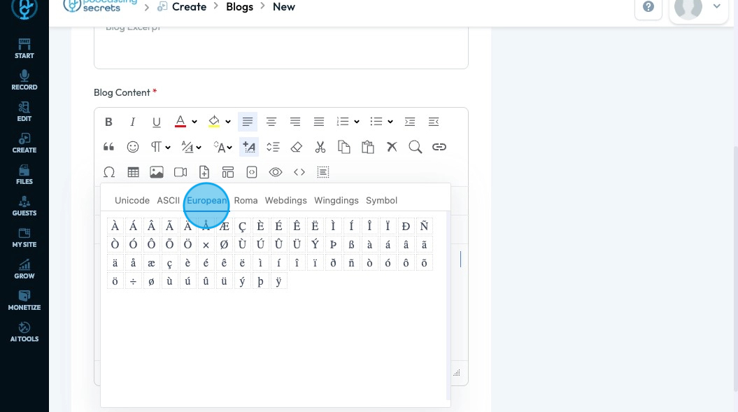 43. Click "European" which is accented and special characters used in European languages like é, ñ, ü, and ß.