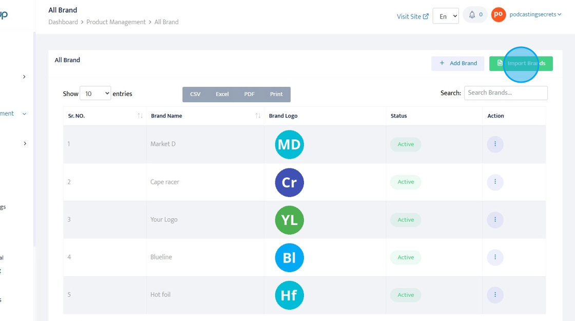 This guide shows you how to add, edit, and manage brands in PodUp. It covers both single and bulk uploads, making it easy to keep your shop organized and up to date. 1. Click "Monetize" 2. Click "My Shop" 3. Click "Products Management" 4. Click ...
