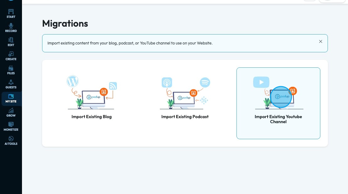 This guide shows you how to import your YouTube channel to PodUp. Follow the steps to move your content smoothly and manage everything in one place.
