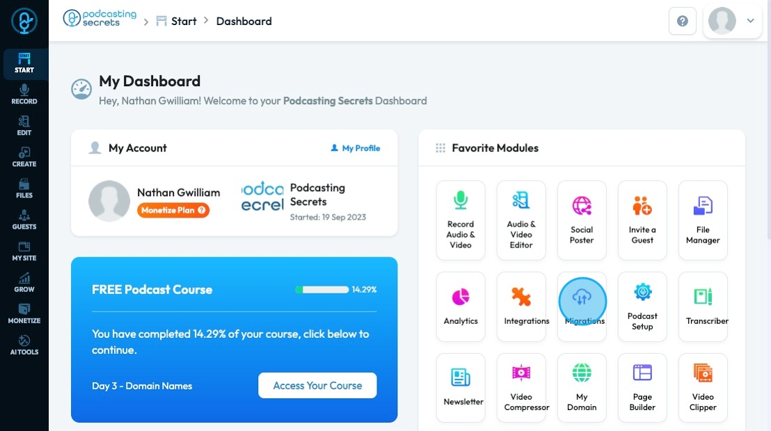2. Click "Migrations" in "Favorite Modules" on the Dashboard