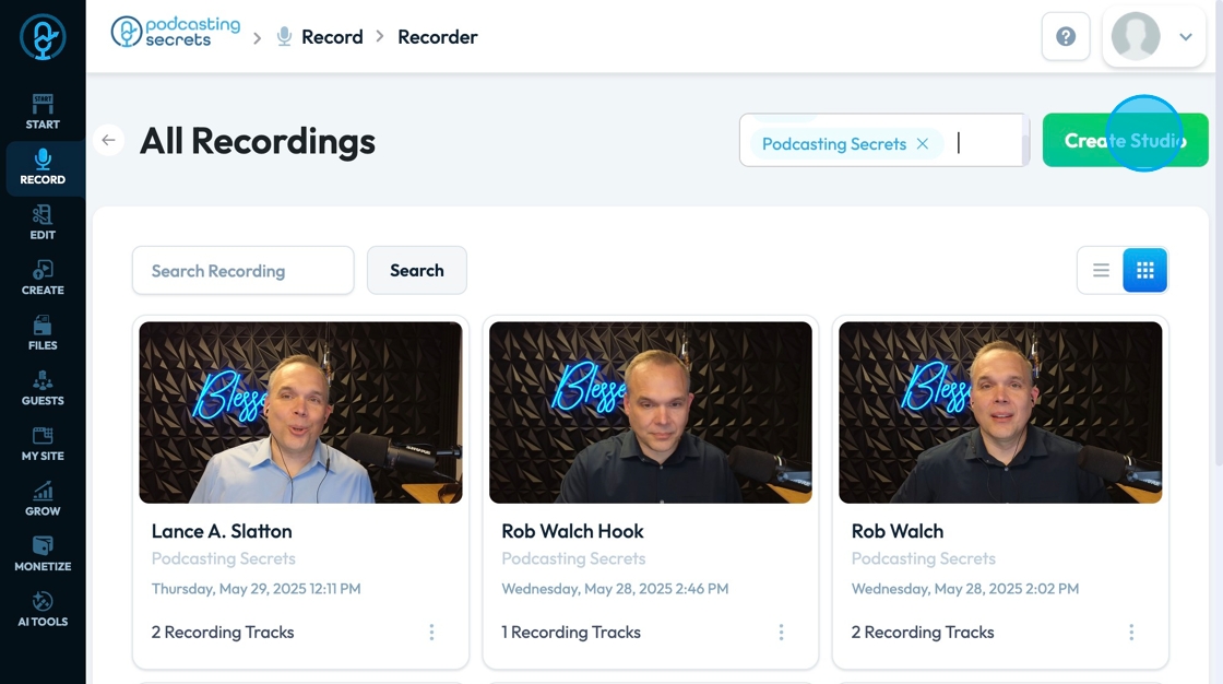 This guide provides a straightforward way to locate your recordings on the PodUp platform. By following the outlined steps, users can easily access and manage their audio and video files. 1. Navigate to https://app.podup.com/home 2. Click "Record ...