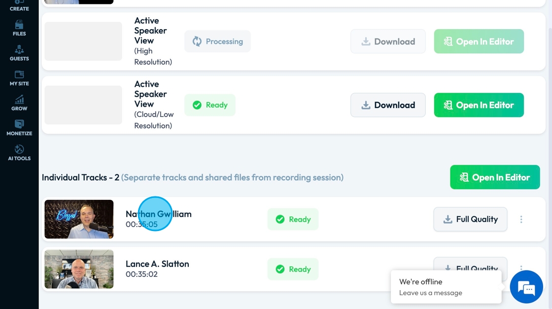 9. Once in the recording, you can download the video by clicking "Download" or edit the track by selecting "Open in Editor"