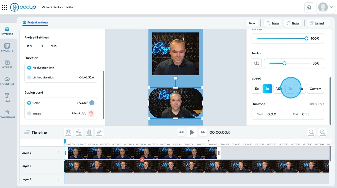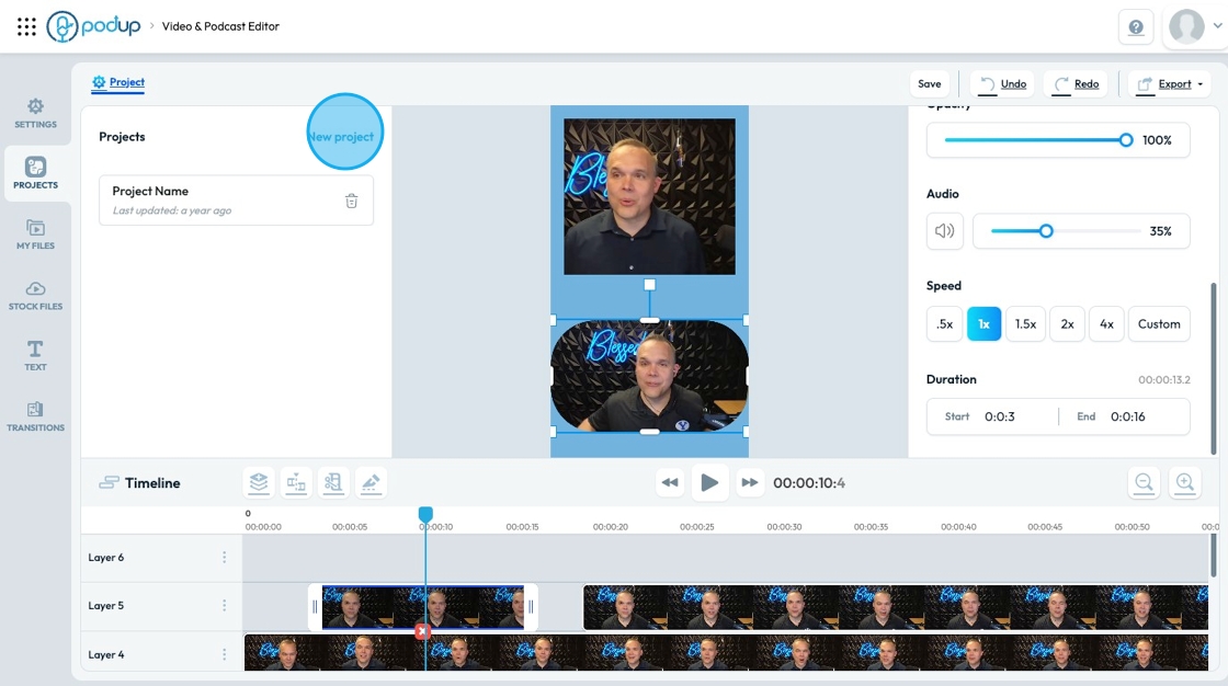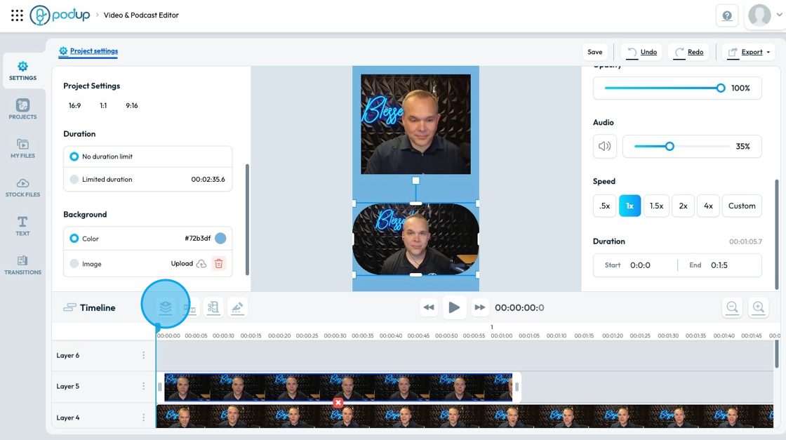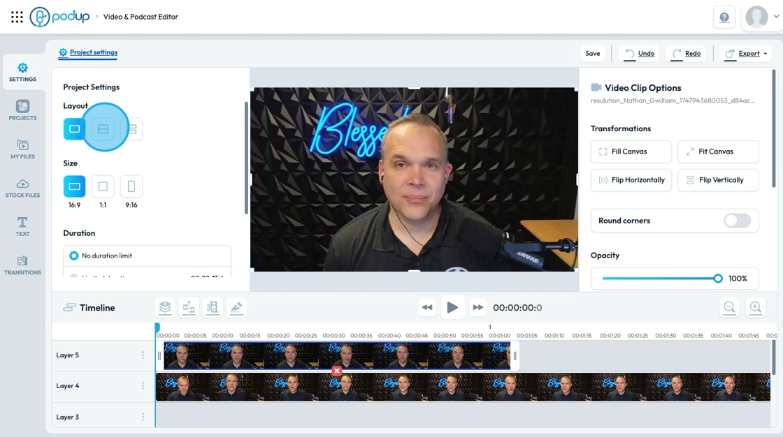 Layer: A piece of video, audio, text, or image that you add to your project. Layers sit on top of each other to build your final video.