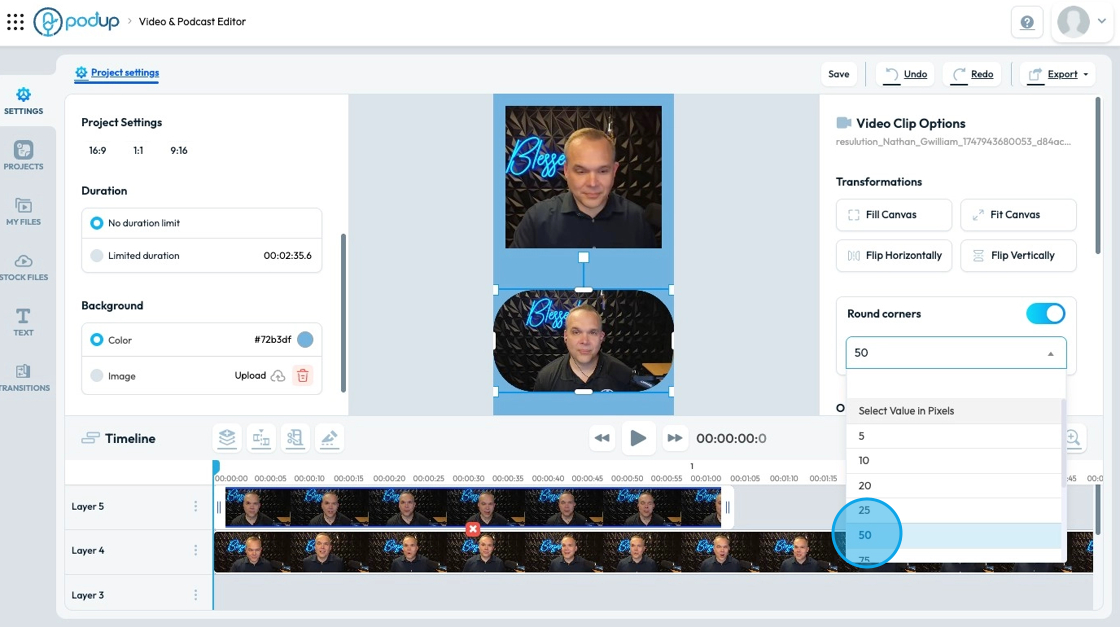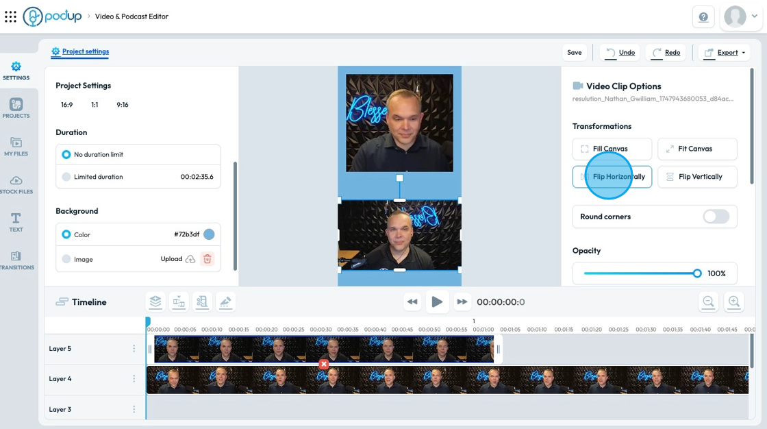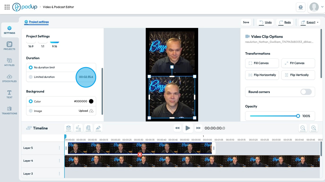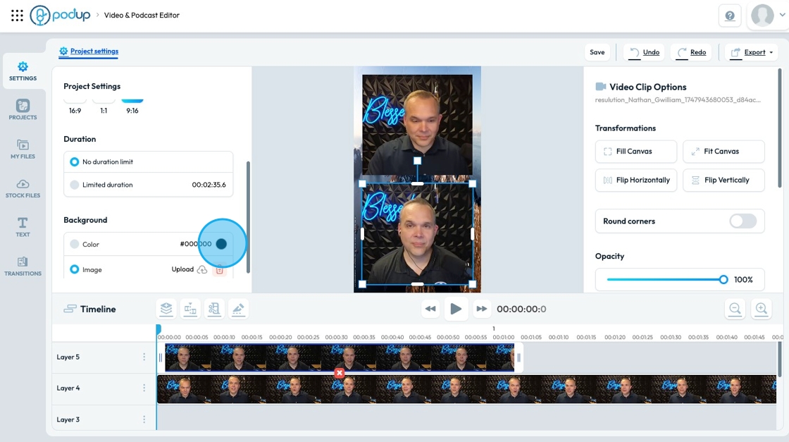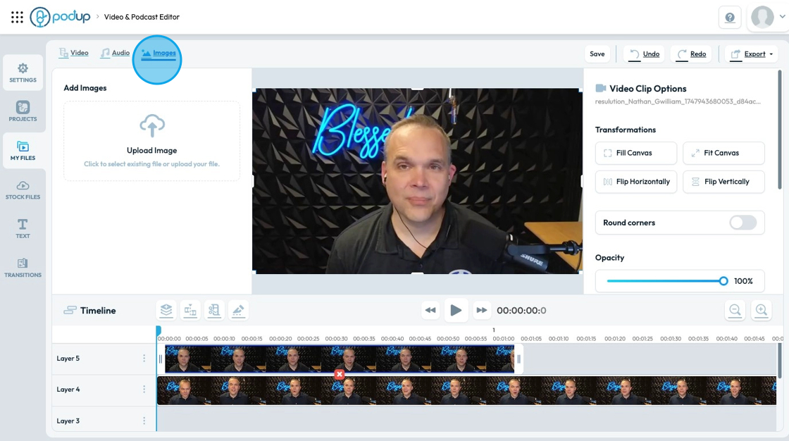 Layer: A piece of video, audio, text, or image that you add to your project. Layers sit on top of each other to build your final video.