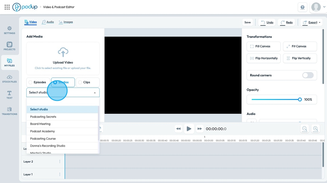 7. Click "Studios" to open all the studios. The drop-down menu will list all the studios. Select a studio to open all the videos in that studio