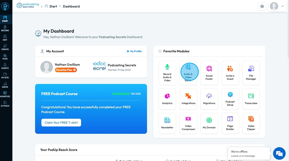2. Click "Audio & Video Editor" in "Favorite Modules" on the Dashboard