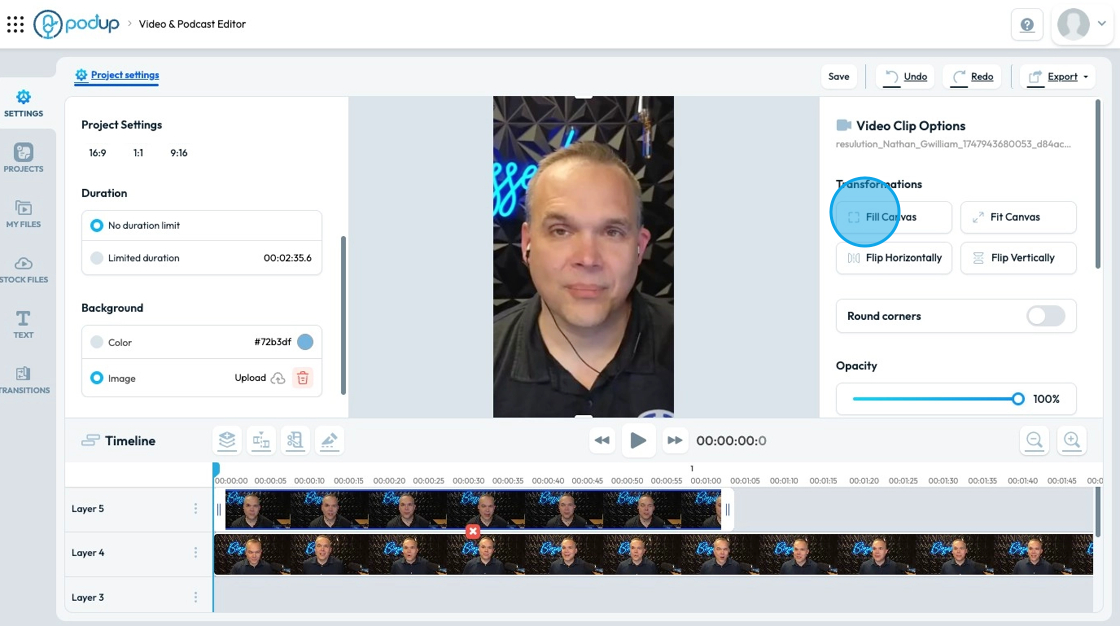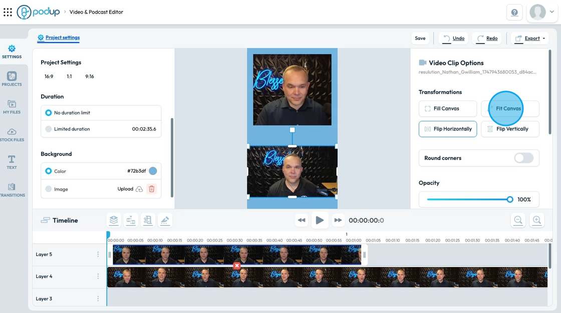 19. Click "Fit Canvas" to make the video fit the canvas in its original form