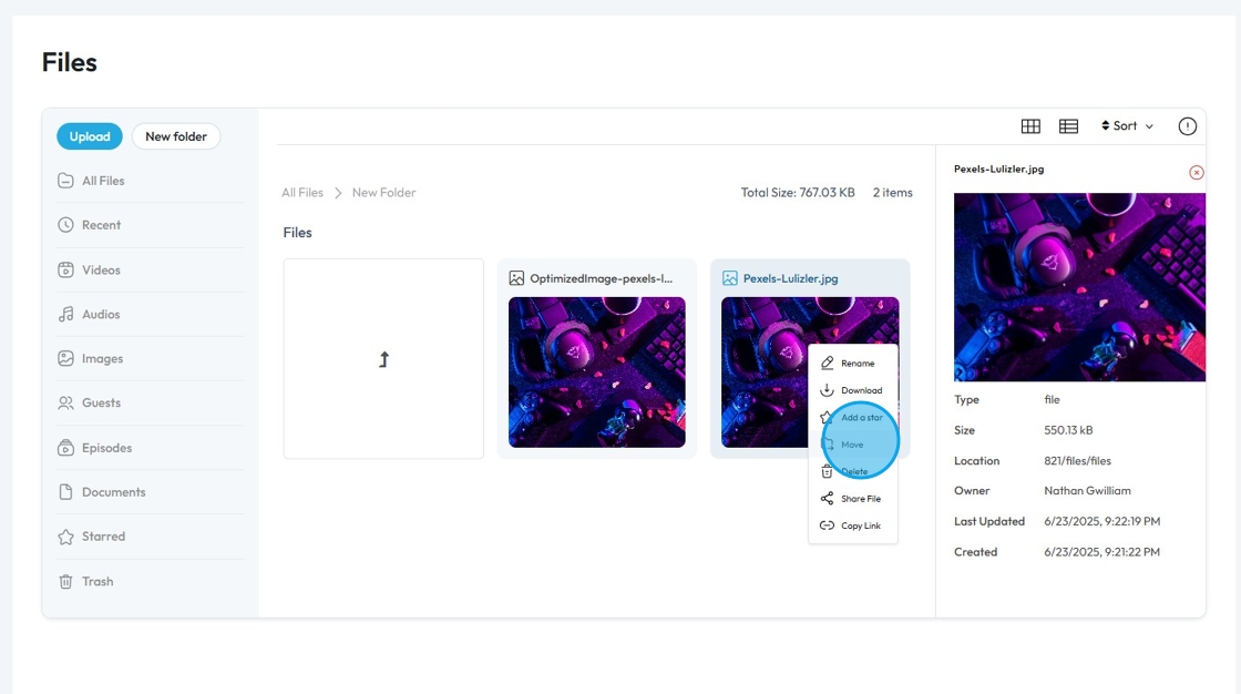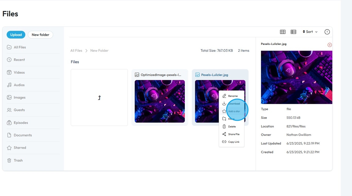 50. Click "Starred" to access all the Favorite/Starred files on PodUp Drive