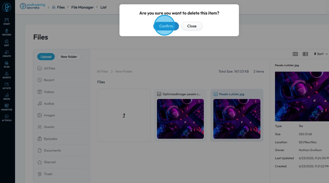 53. Click "Confirm" to delete the file or "Cancel" to ignore the action
