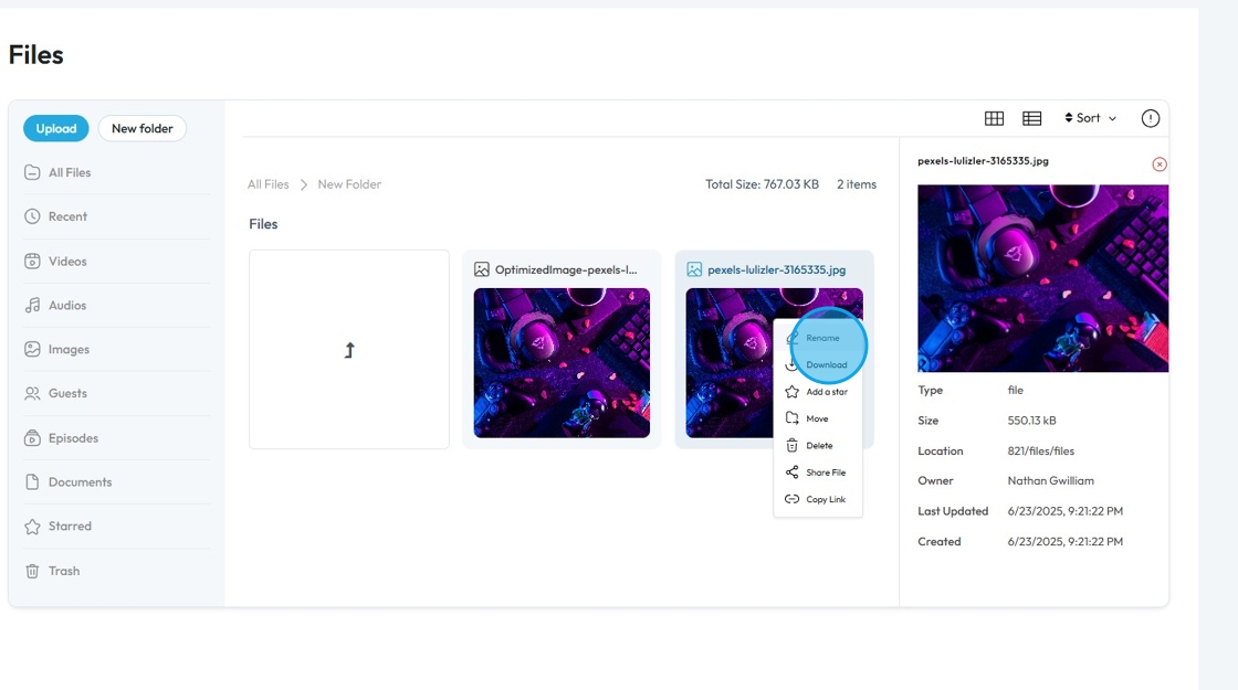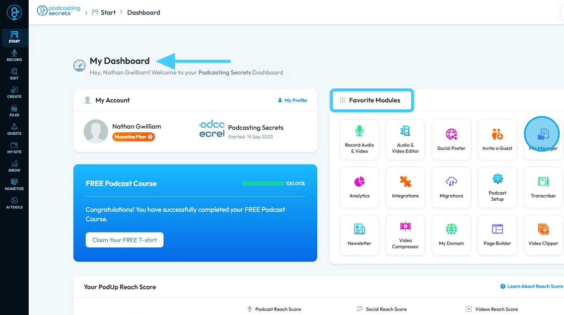 1. There are 2 ways to access the "File Manager" in PodUp.