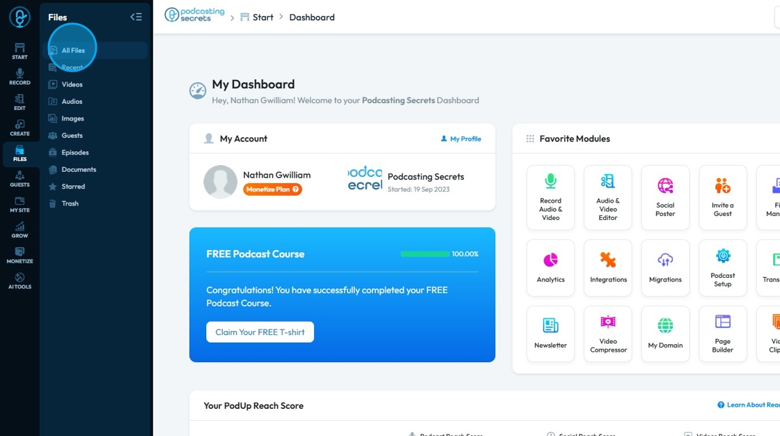 42. Click on the "All Files" category to view all the files and folders present on the PodUp Drive