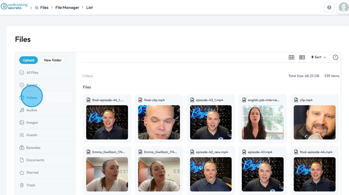 44. To filter for all the videos present on PodUp drive, click "Videos"