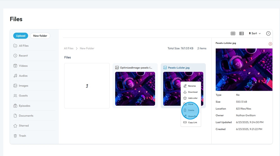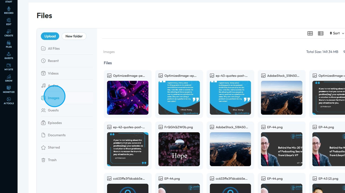 46. Click "Images" to filter out all the Images on the PodUp Drive.