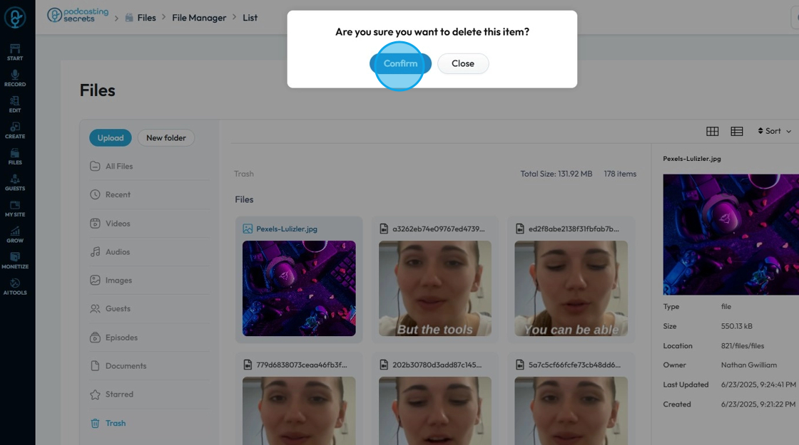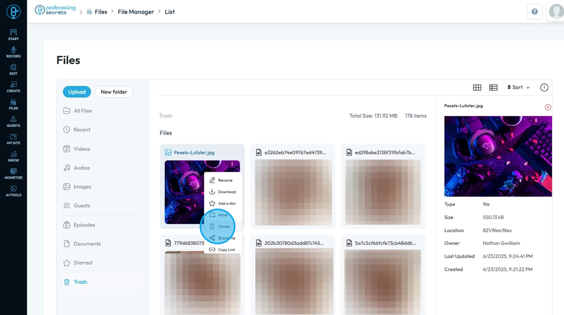 51. Click "Trash" to access all the deleted files on PodUp drive