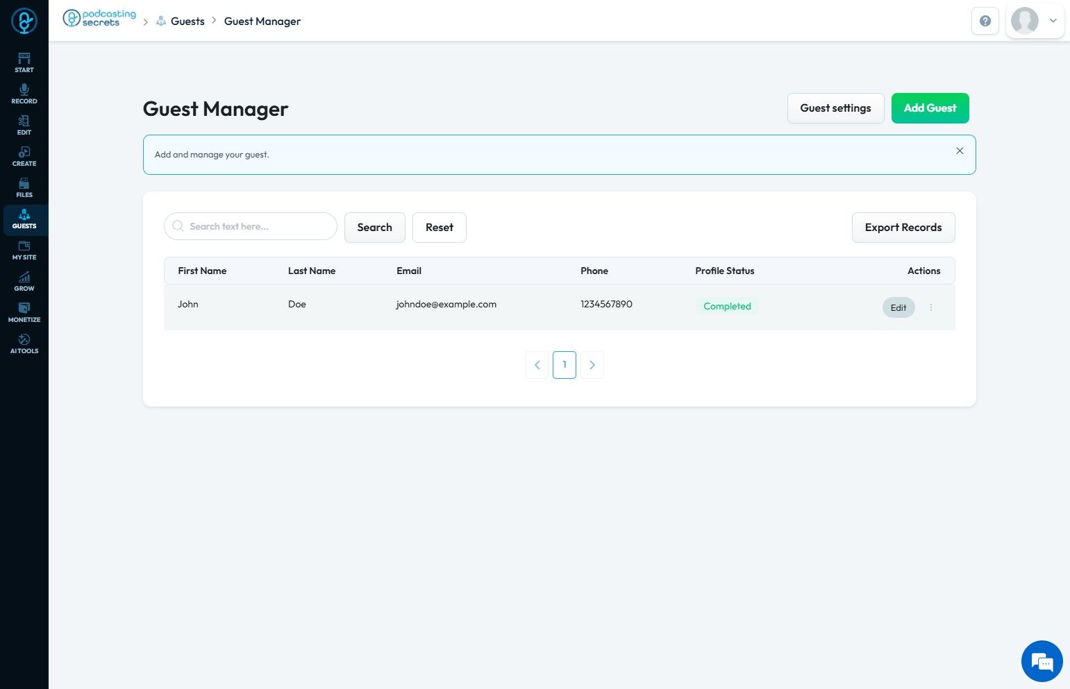 16. Click "Edit" to edit the profile of the guest